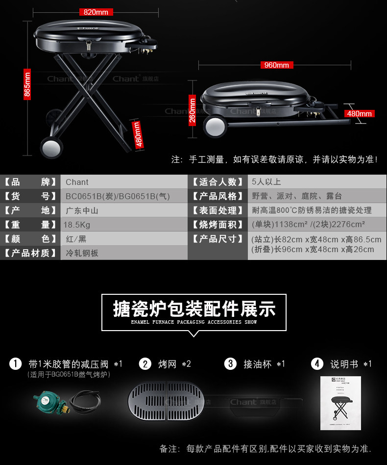 Chant/长青 烧烤炉户外 便携大号加厚木炭烧烤架 野外烧烤烤炉