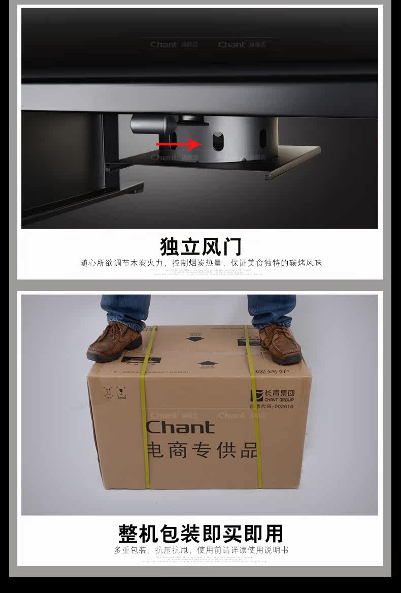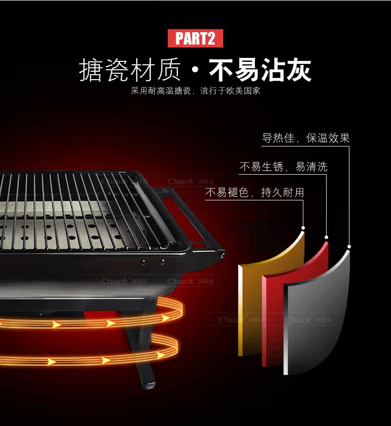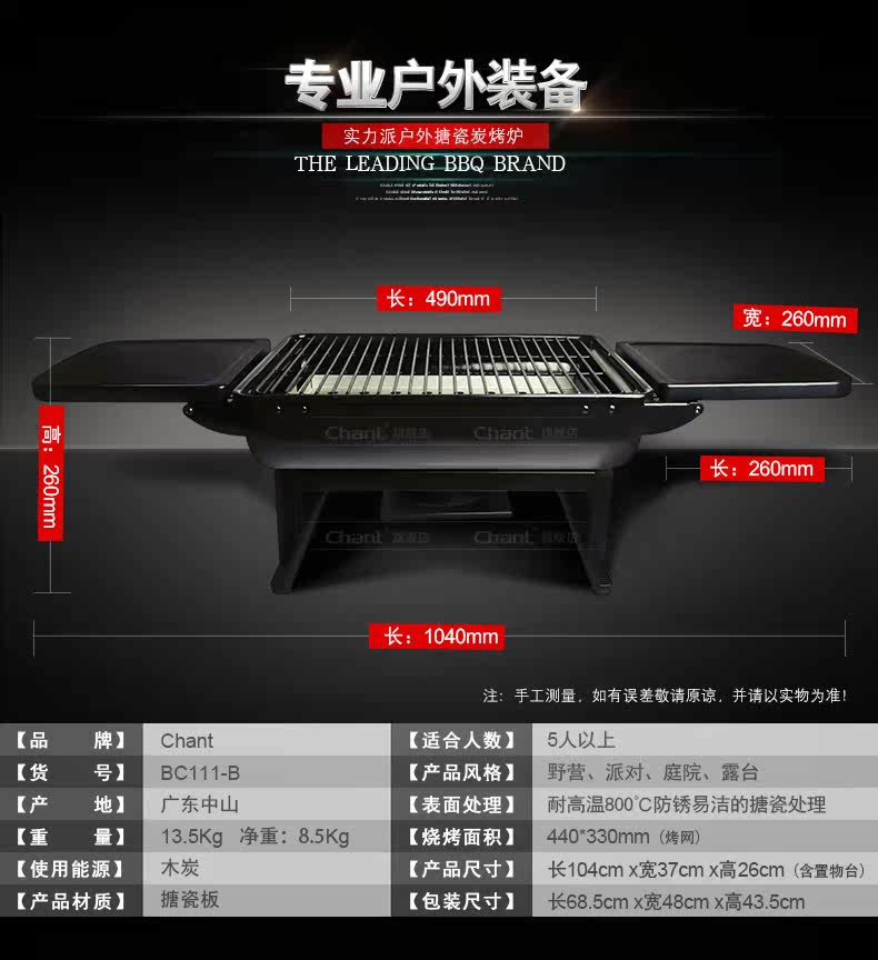 Chant/长青 烧烤炉户外 便携大号加厚木炭烧烤架 野外烧烤烤炉