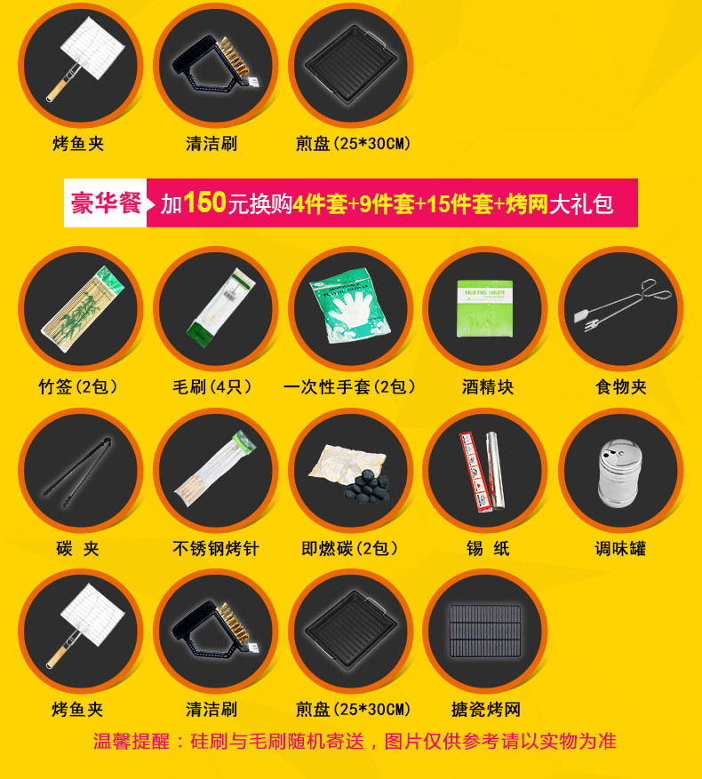 家用 不锈钢烧烤炉烧烤架 户外全套加厚便携折叠木炭烧