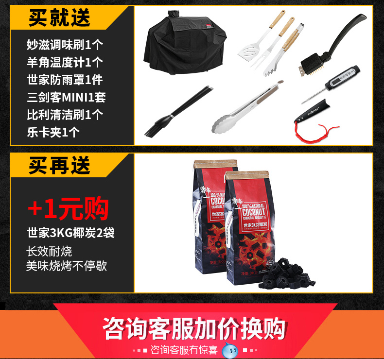 烧烤世家加厚不锈钢烧烤炉户外便携庭院家用大号液化燃气烧烤架箱