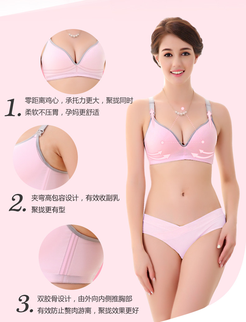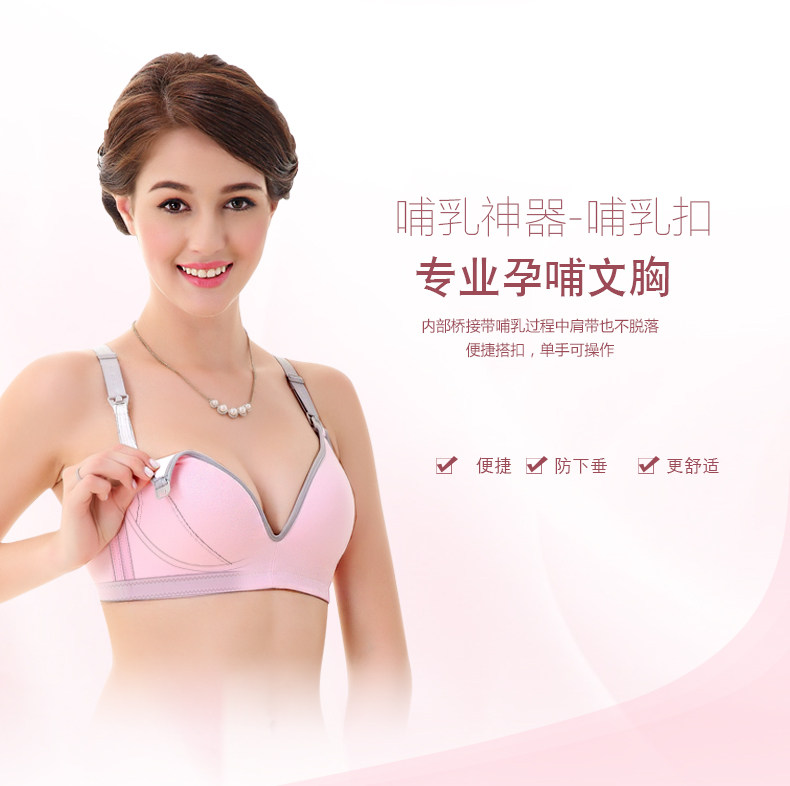 婷妃哺乳文胸孕妇内衣胸罩怀孕期浦乳喂奶前开扣式无钢圈聚拢