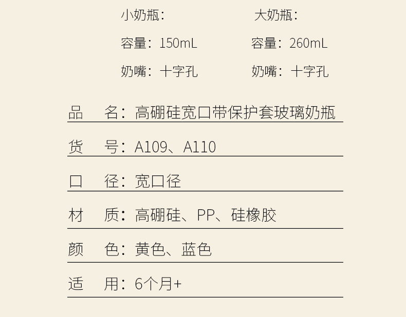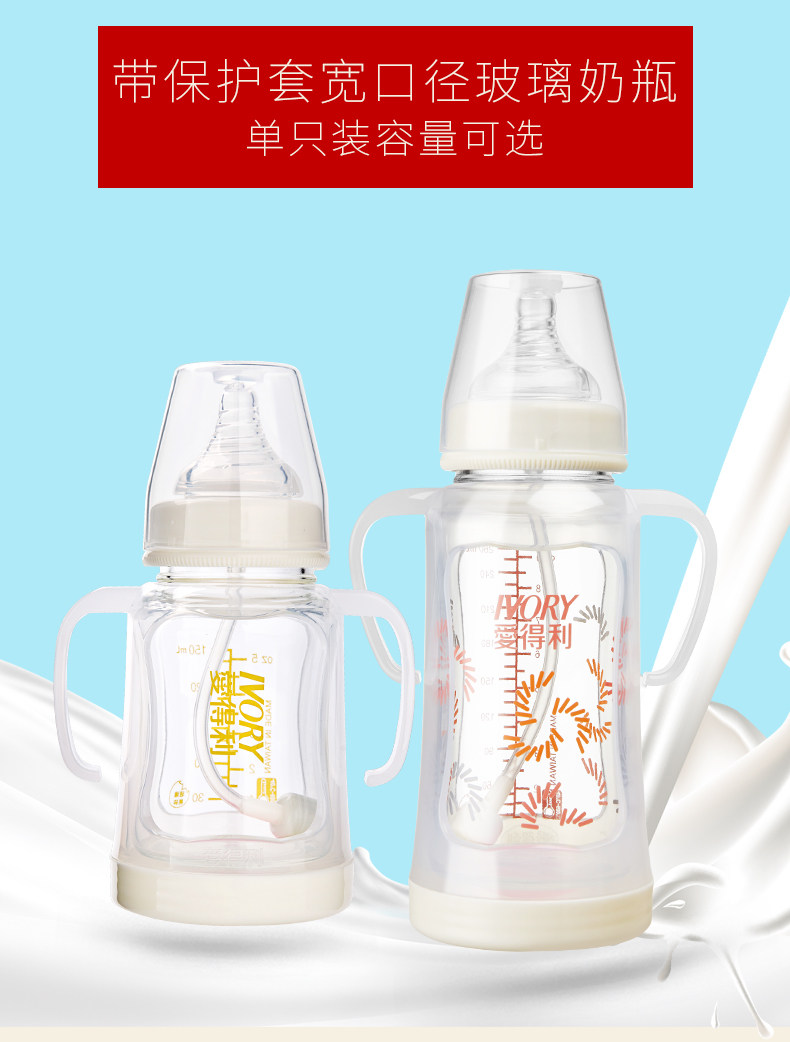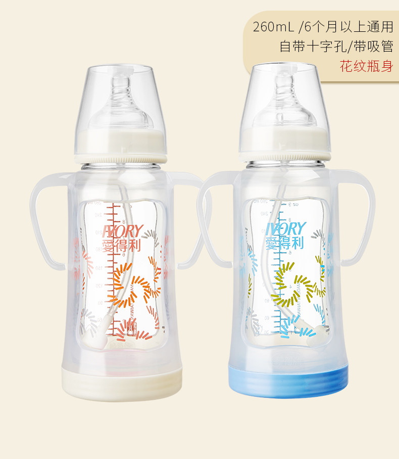 爱得利玻璃奶瓶高硼硅宝宝宽口奶瓶新生儿150+260ml奶瓶婴儿A111