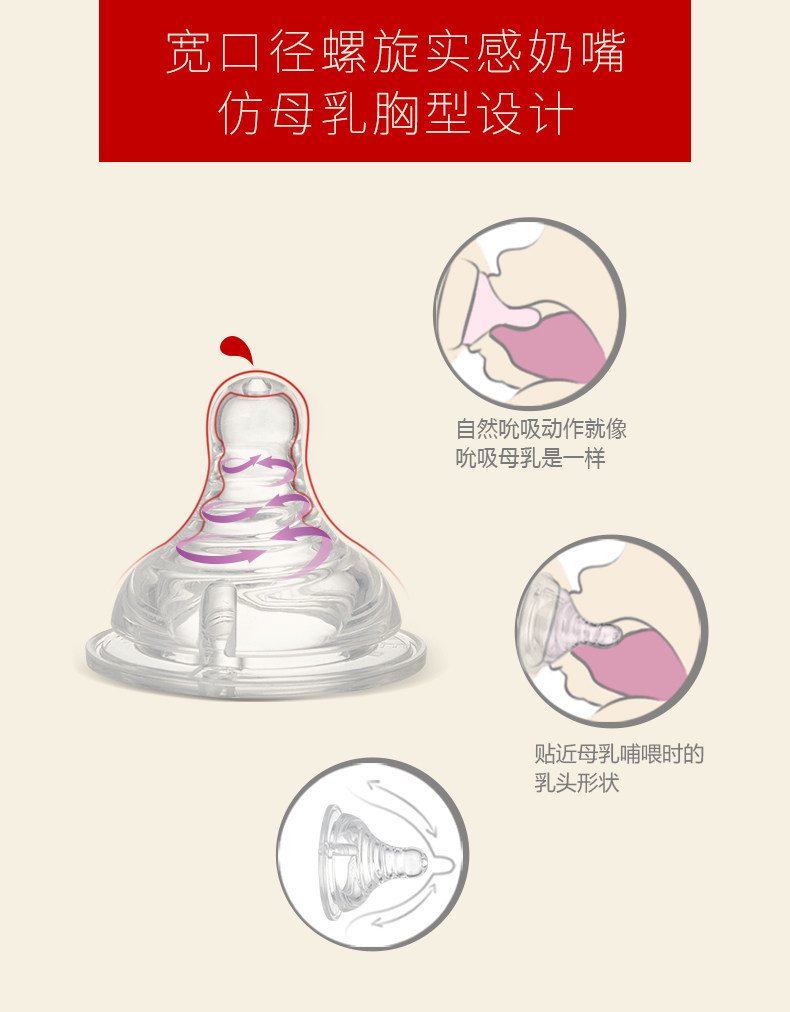 爱得利奶嘴婴儿标准口径螺旋母乳实感1粒装S/M/L/+字孔Y2001-2004