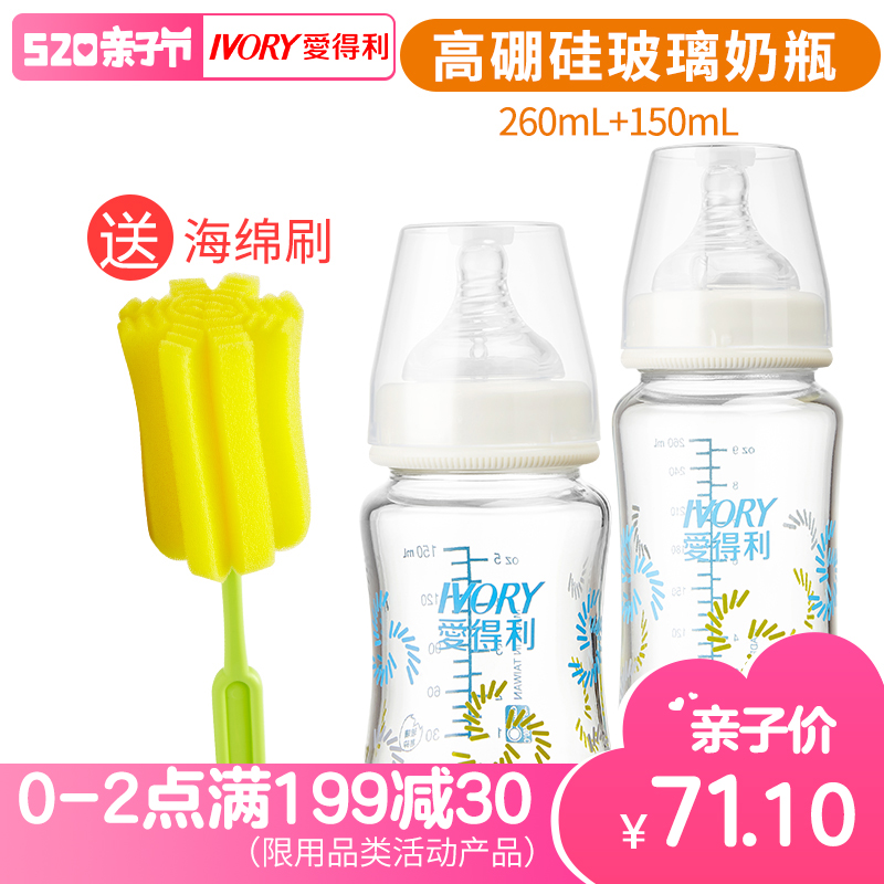 爱得利玻璃奶瓶高硼硅宝宝宽口奶瓶新生儿150+260ml奶瓶婴儿A111