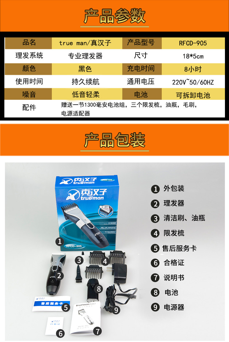 真汉子成人婴儿理发器充电式电推剪静音剃头刀电动推子发廊店通用