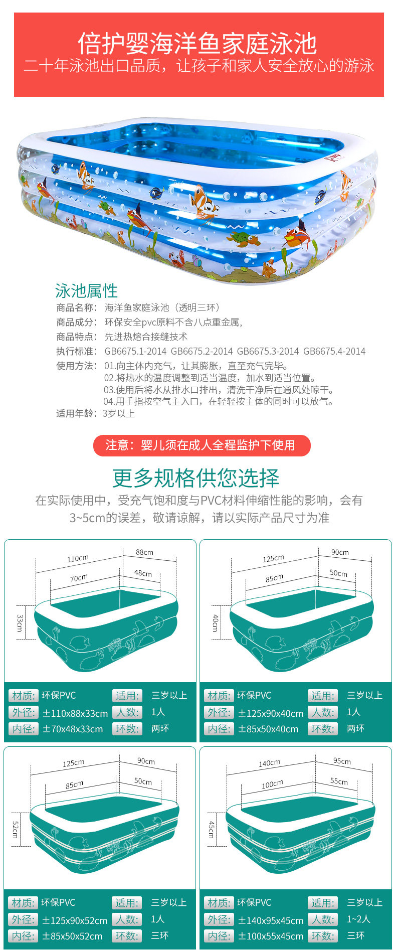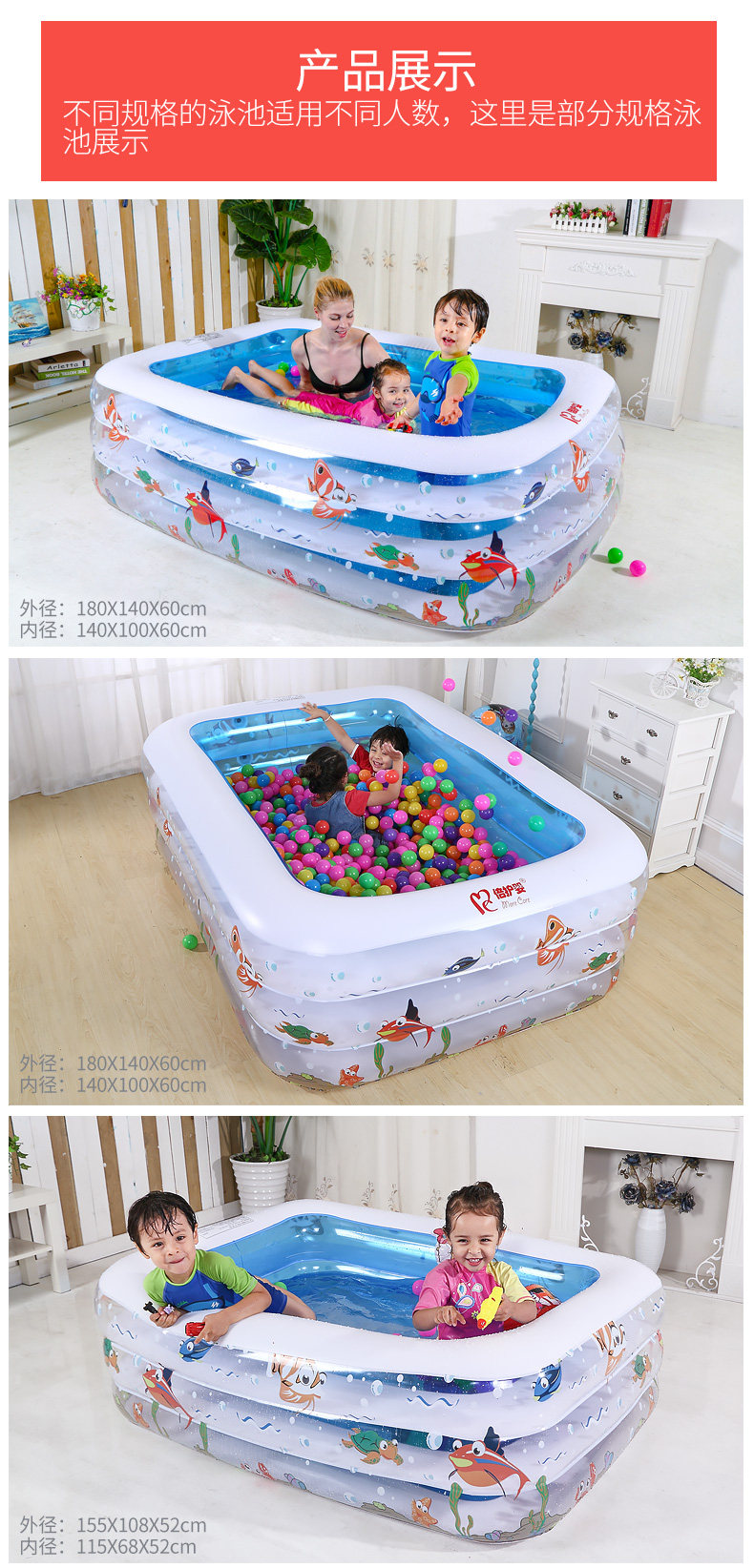 倍护婴 儿童游泳池充气家庭婴儿成人家用宝宝加厚小孩超大号水池