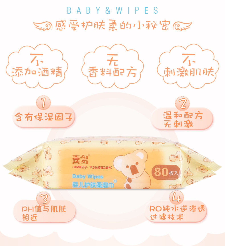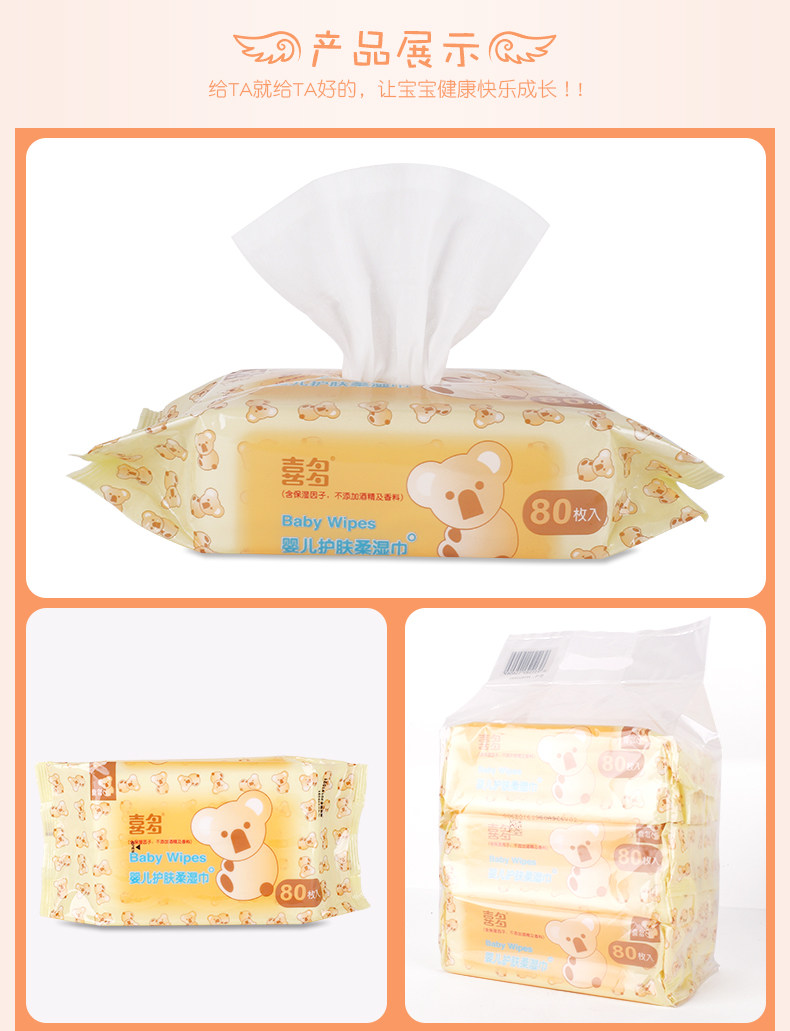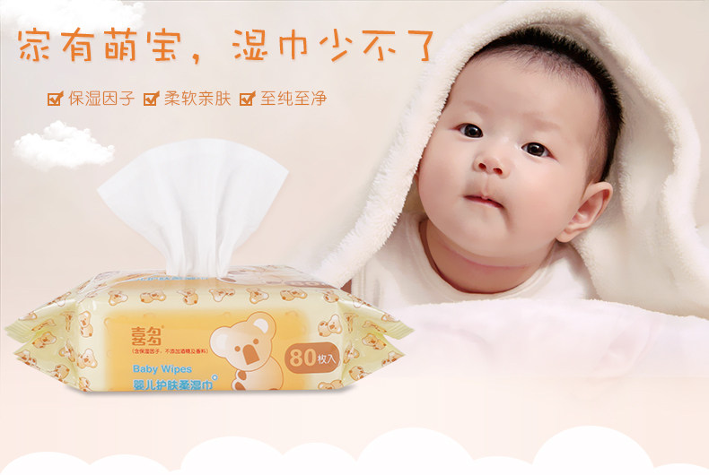 喜多 手口婴儿柔湿巾 宝宝新生儿护肤湿巾纸30抽*3包