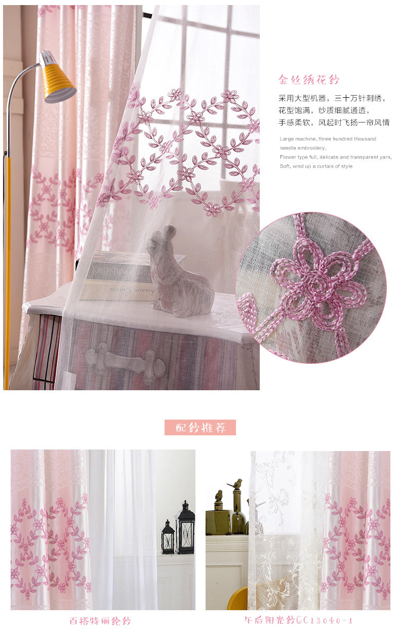 金蝉 银盾抗菌 韩式清新儿童窗帘定制成品客厅卧室飘窗纱帘布帘