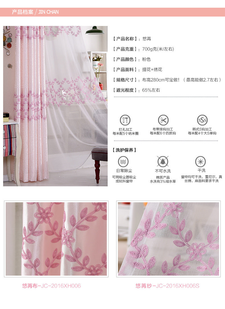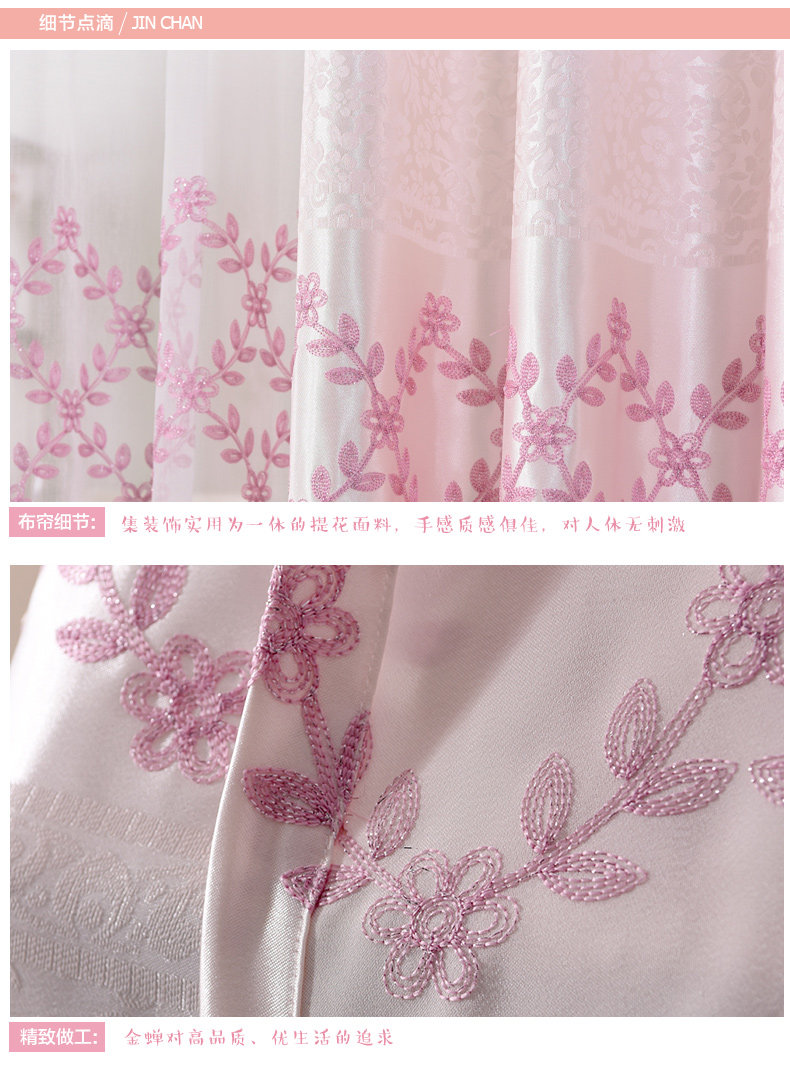 金蝉 欧式田园客厅窗帘纱全遮光定制窗帘成品卧室落地飘窗纱