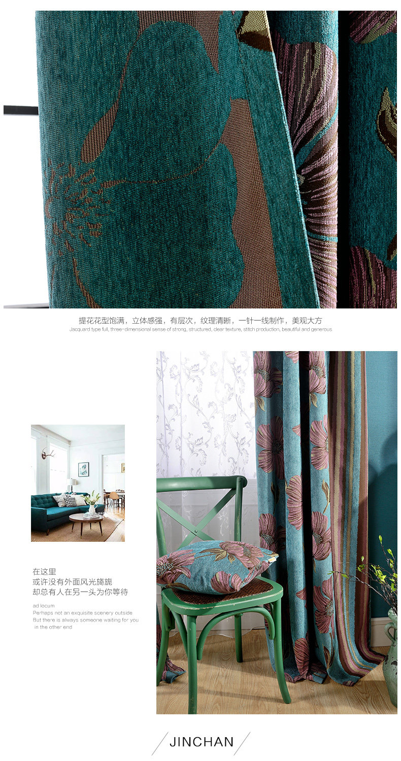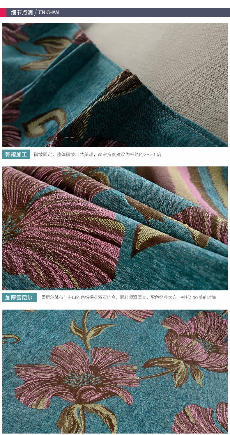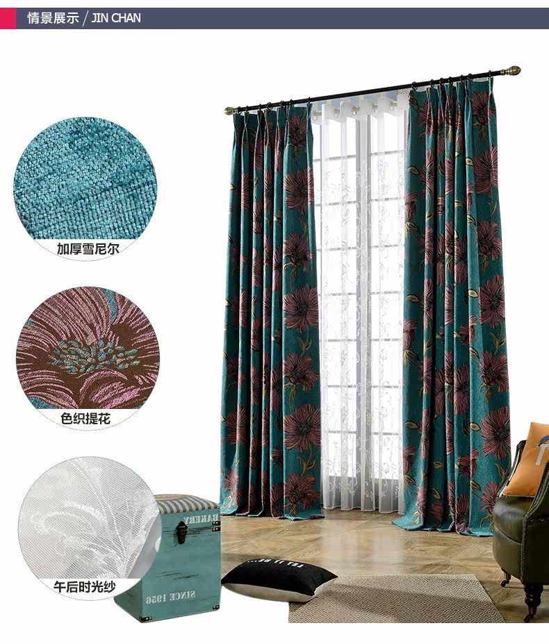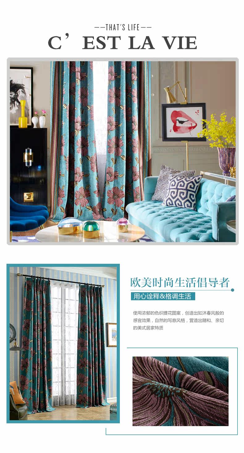 金蝉 客厅美式窗帘欧美加厚雪尼尔遮光书房阳台提花窗帘成品定制