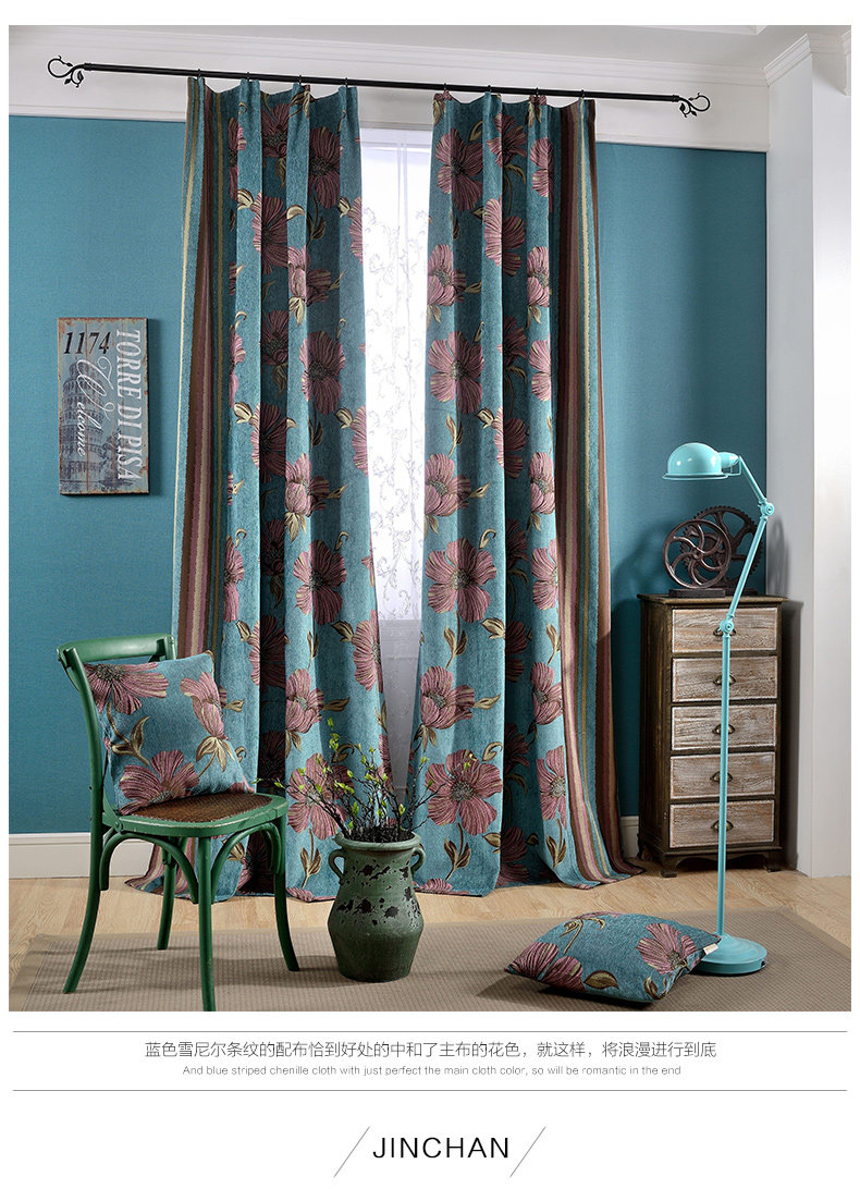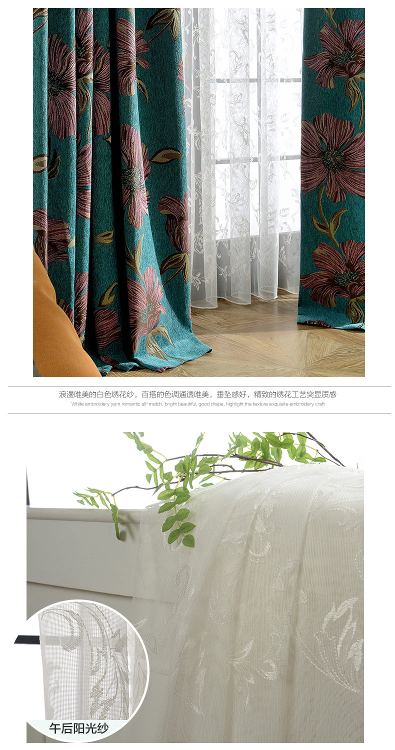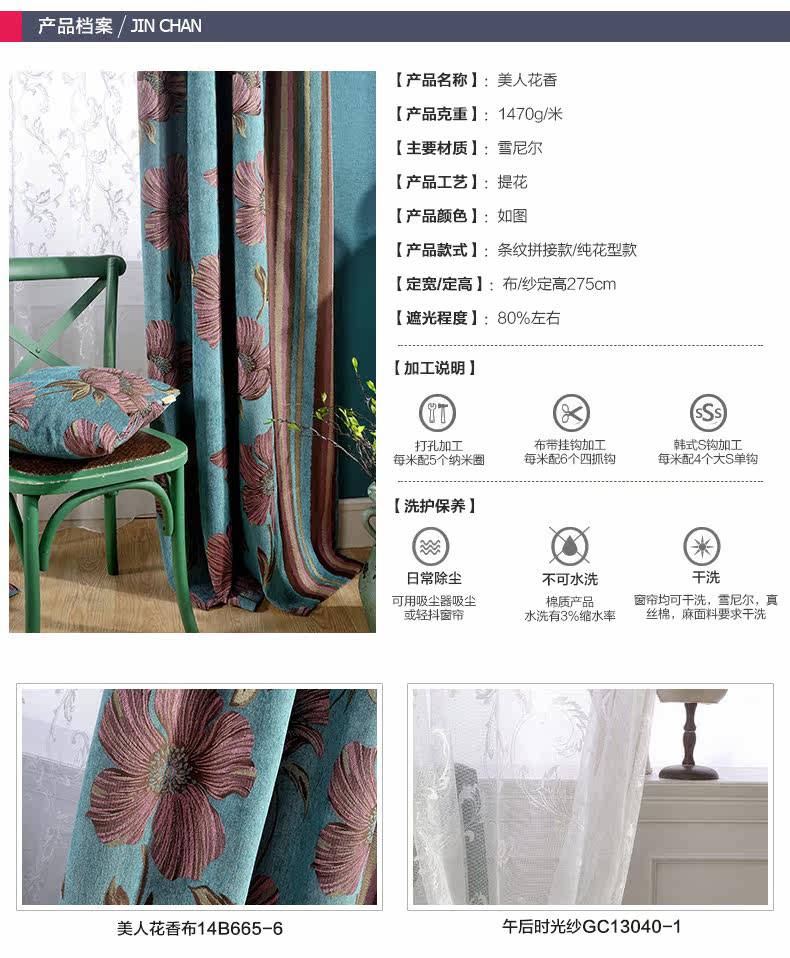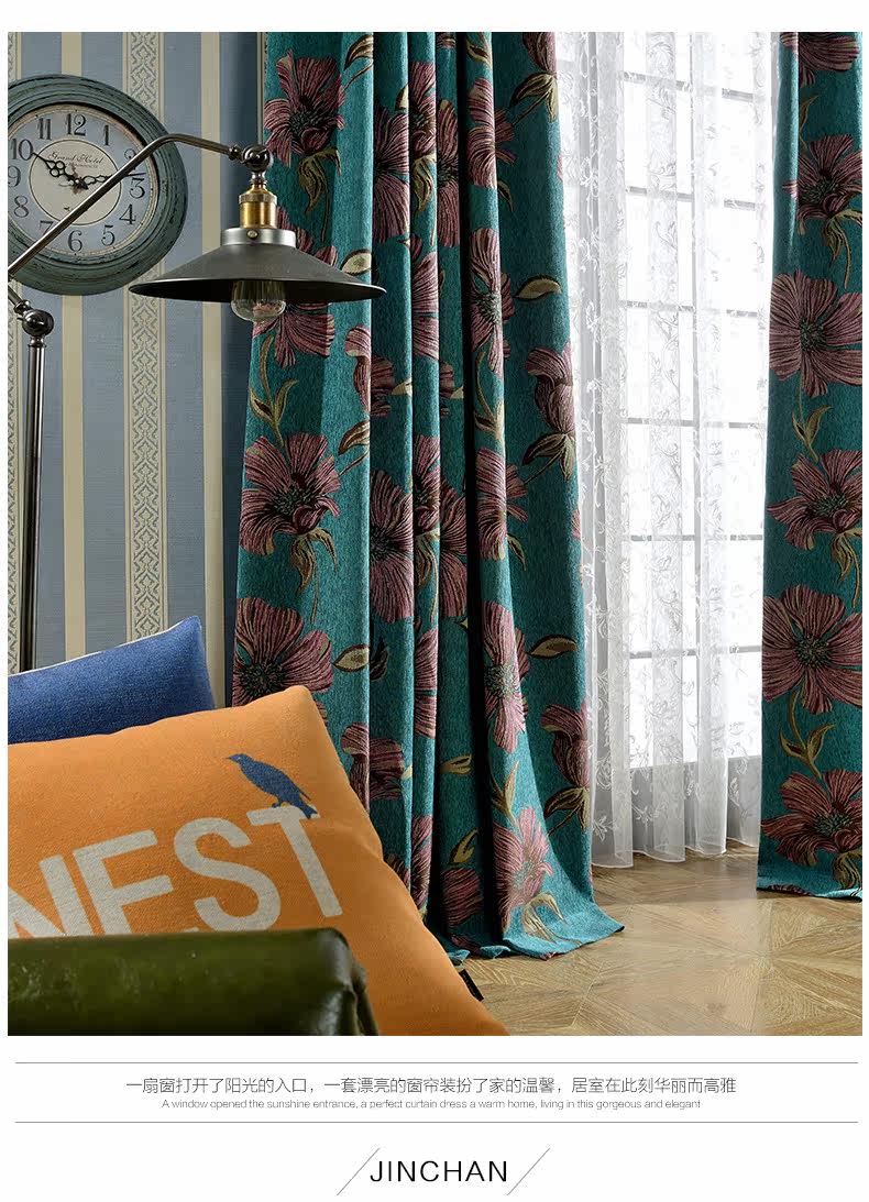 金蝉 客厅美式窗帘欧美加厚雪尼尔遮光书房阳台提花窗帘成品定制