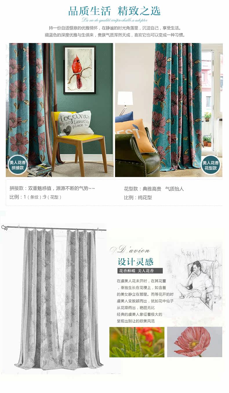 金蝉 欧式田园客厅窗帘纱全遮光定制窗帘成品卧室落地飘窗纱