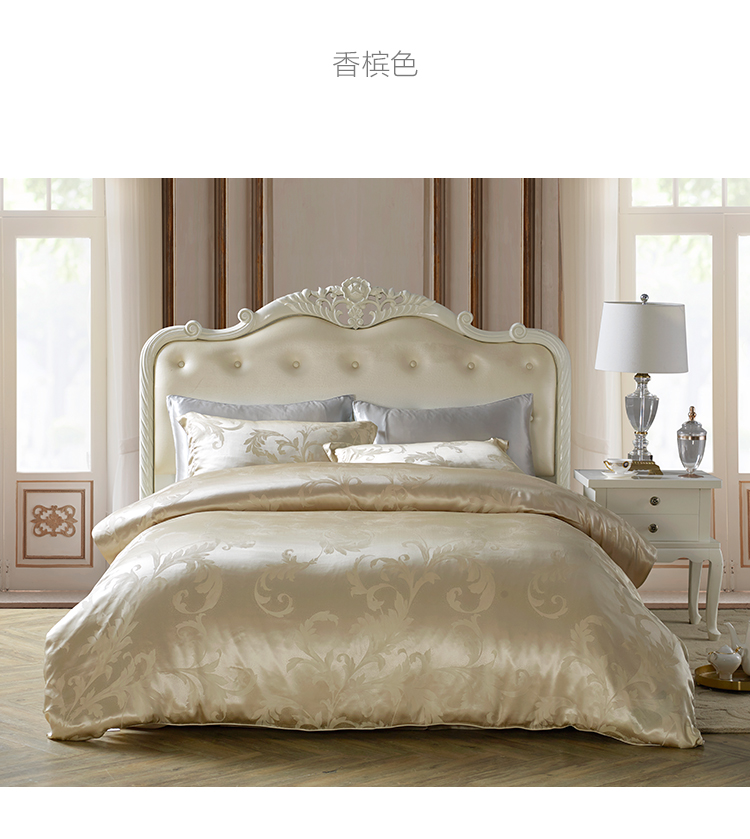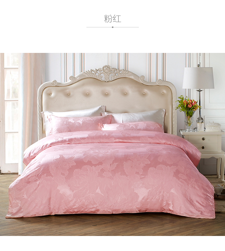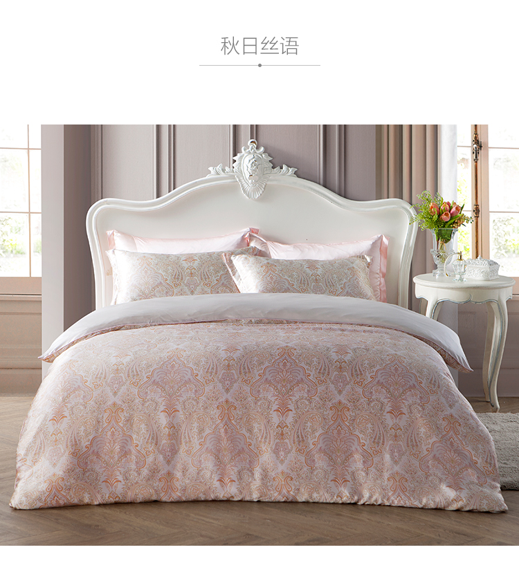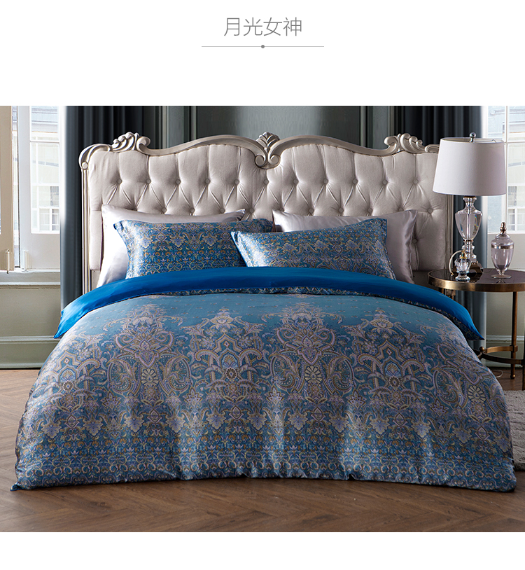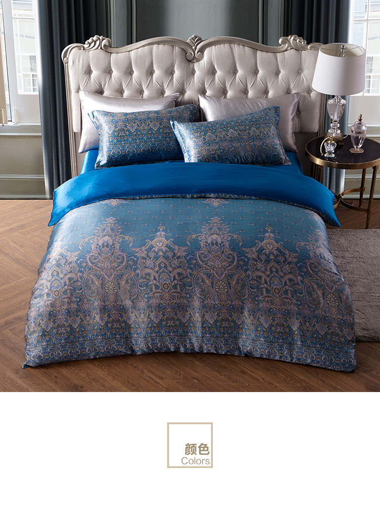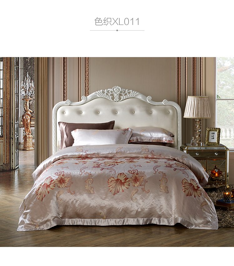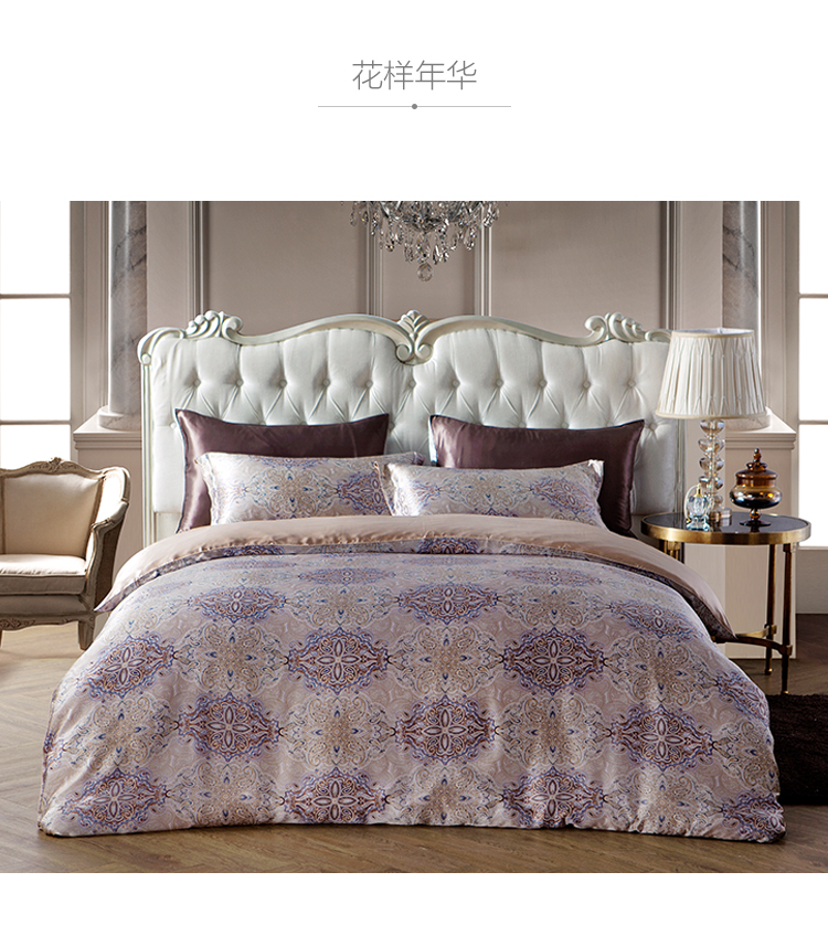钱皇100%双面真丝四件套 丝绸婚庆印花套件 真丝床上用品床单枕套