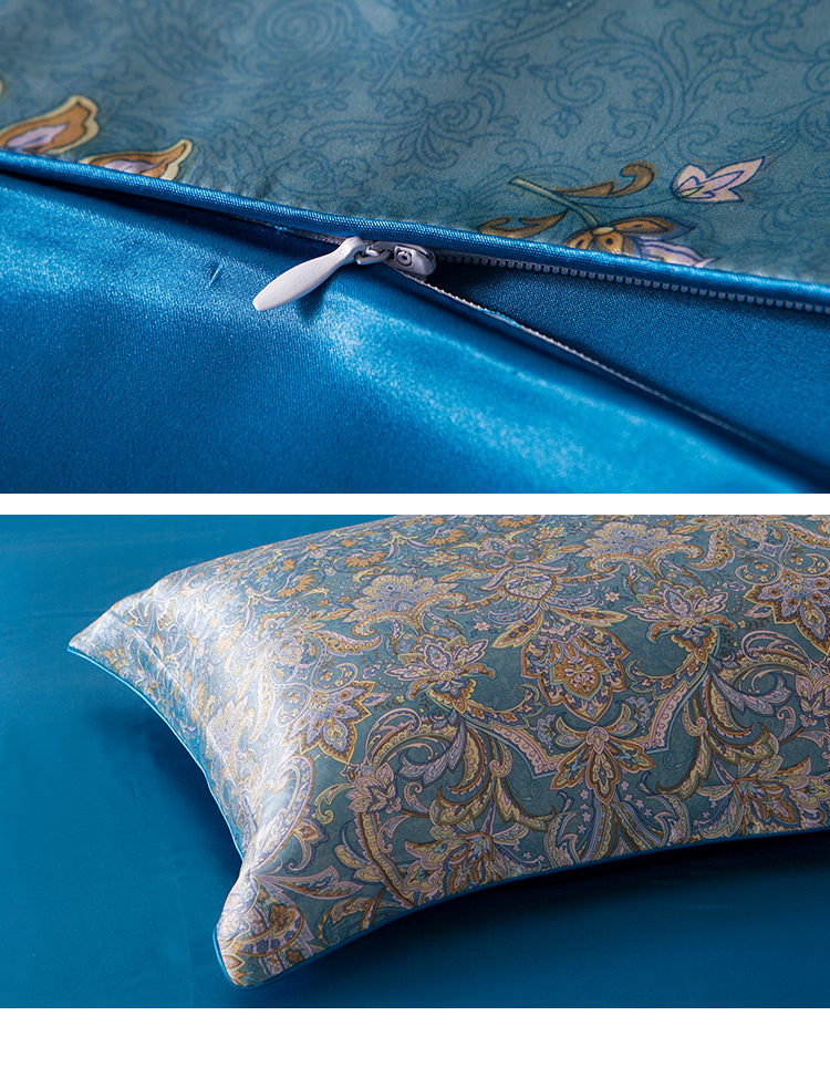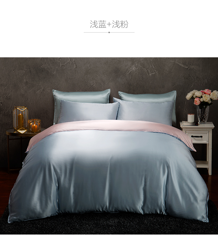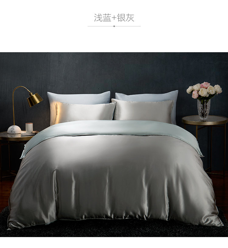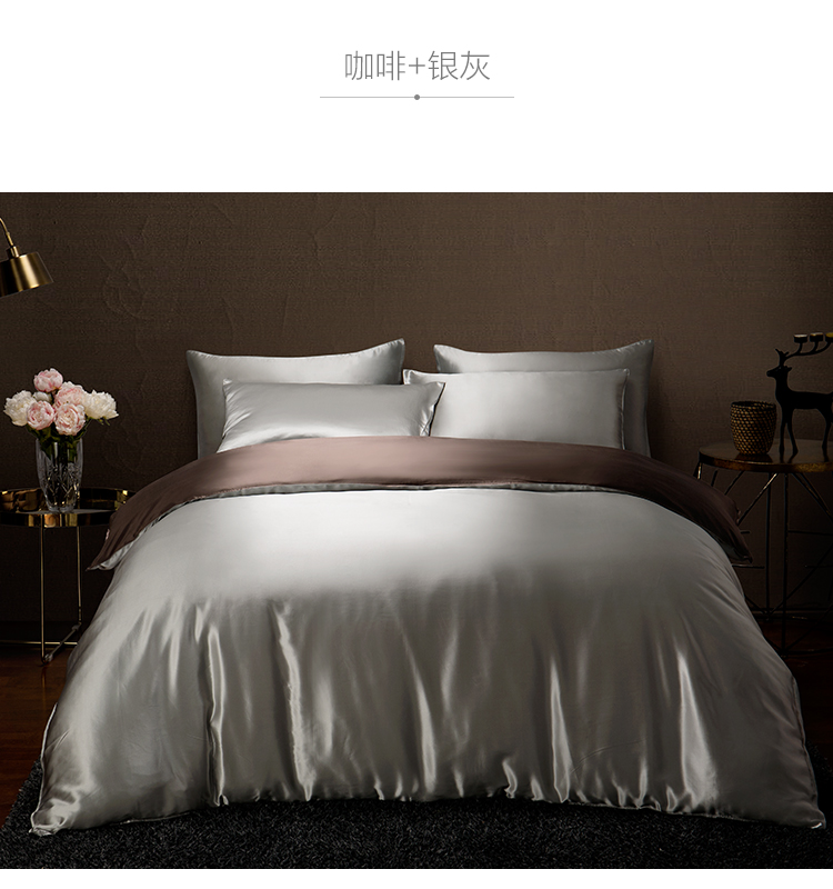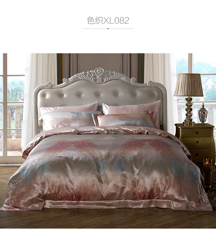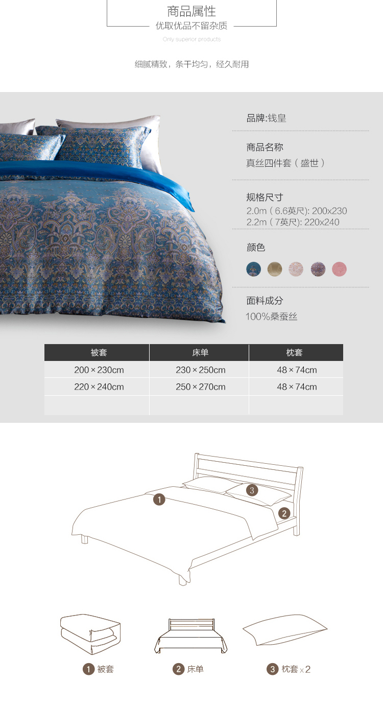 钱皇100%双面真丝四件套 丝绸婚庆印花套件 真丝床上用品床单枕套