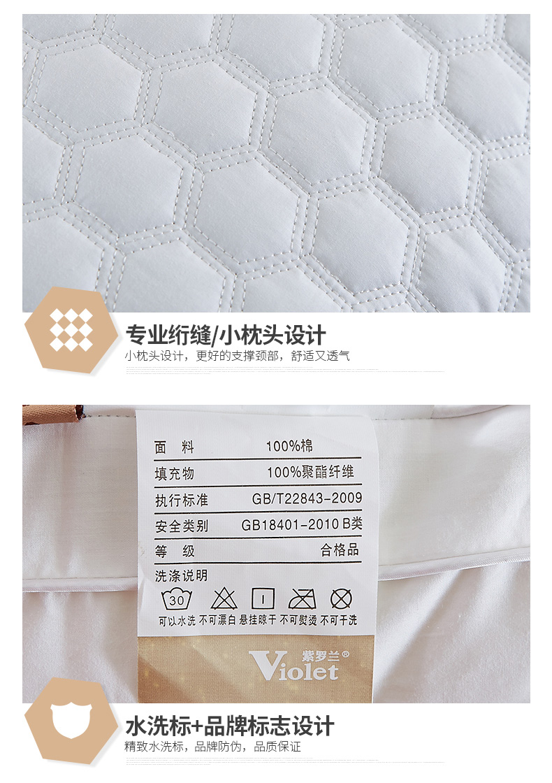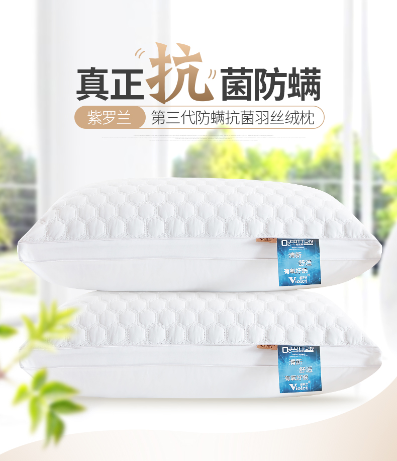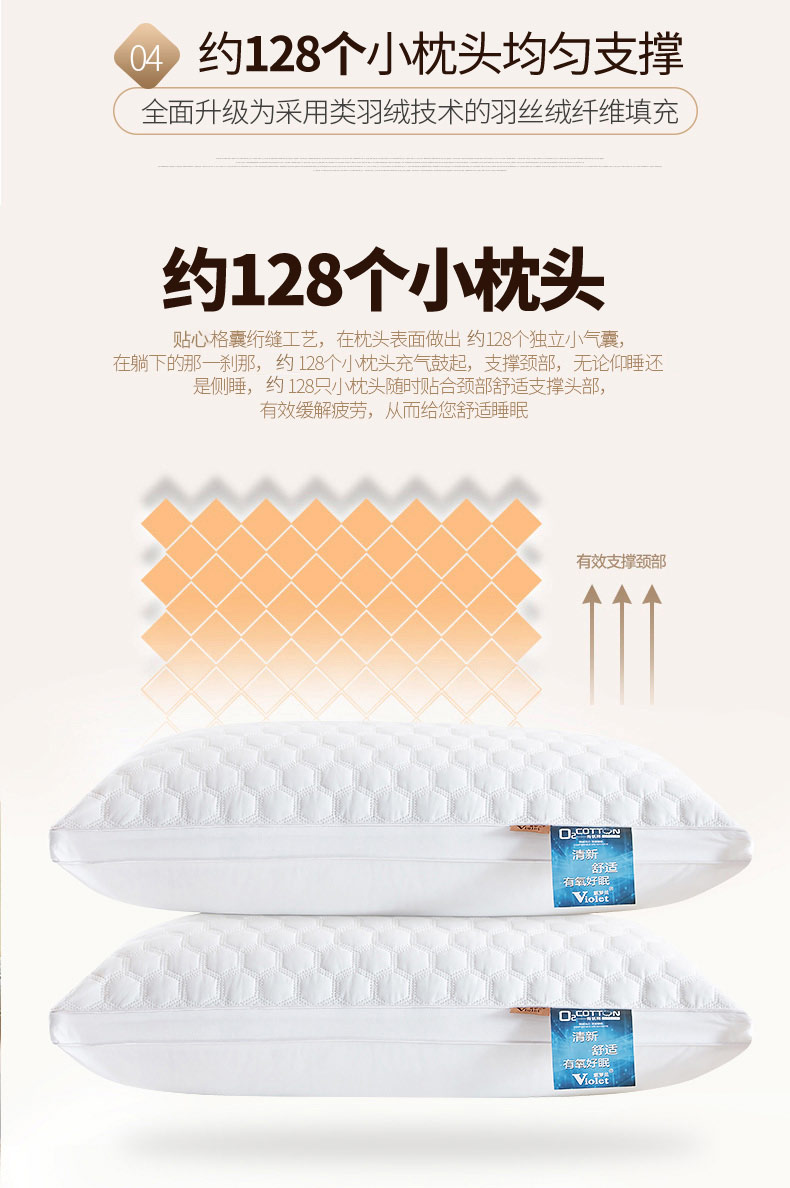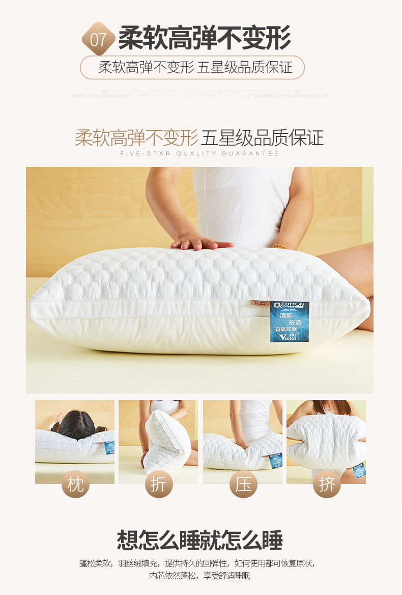 紫罗兰水洗全棉羽丝绒成人学生回弹柔软酒店枕护颈枕芯一对拍2