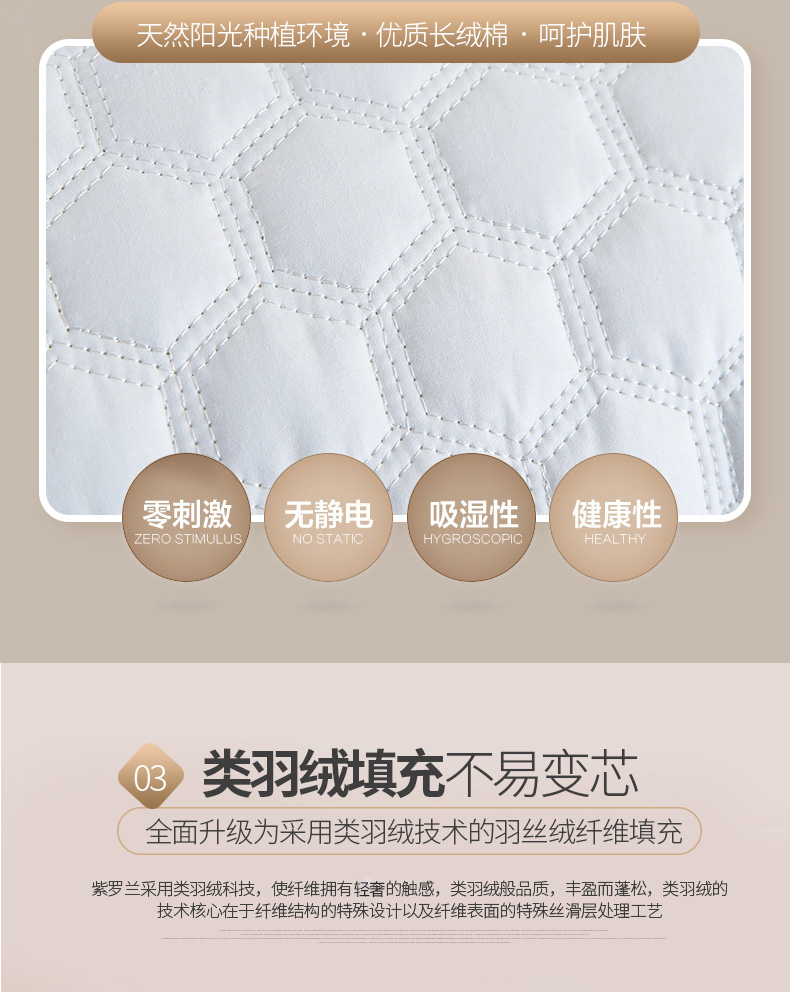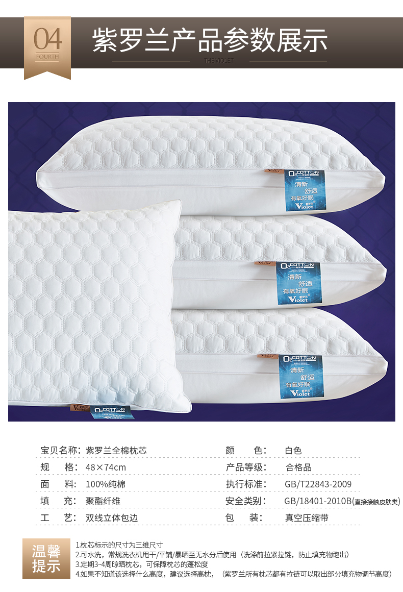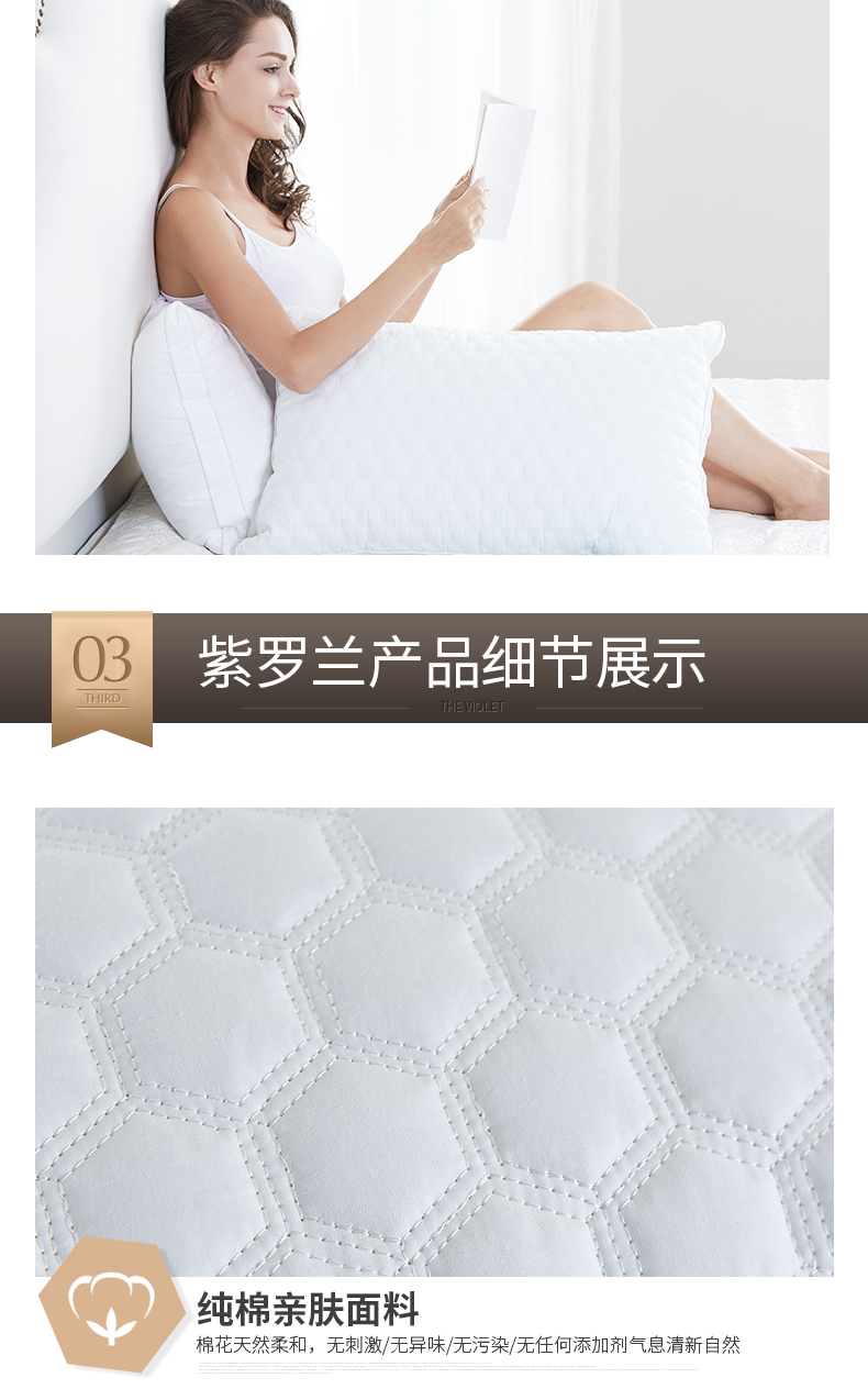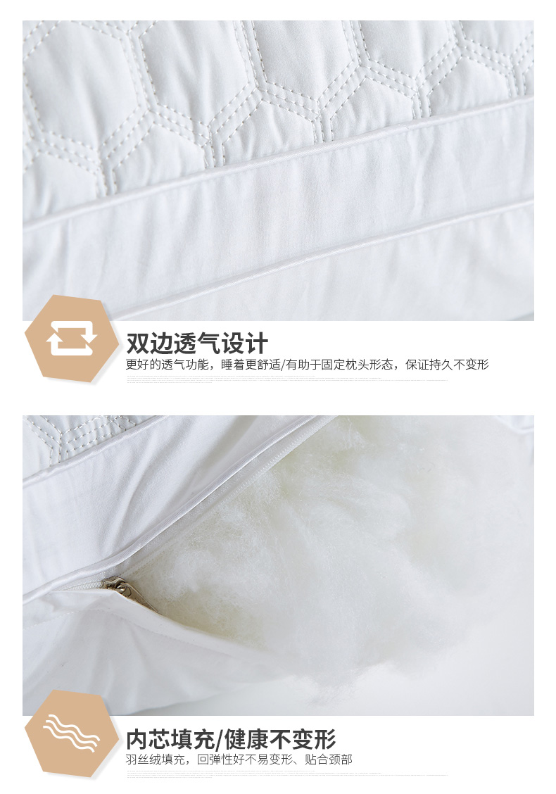 紫罗兰水洗全棉羽丝绒成人学生回弹柔软酒店枕护颈枕芯一对拍2