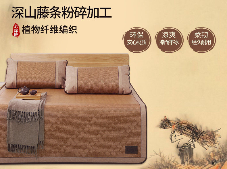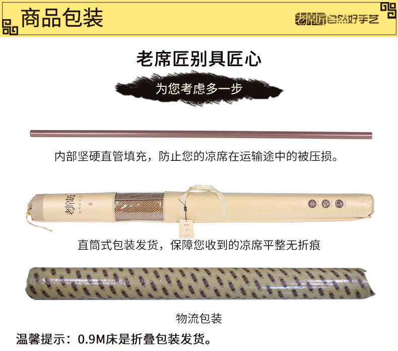老席匠凉席1.8m床三件套竹加厚藤席折叠席子1.2空调单人夏季1.5米