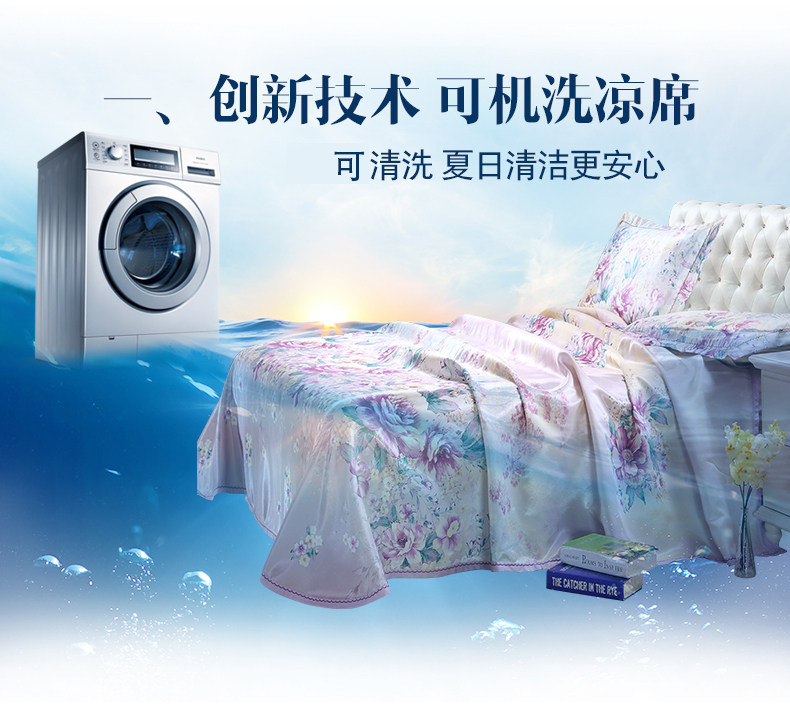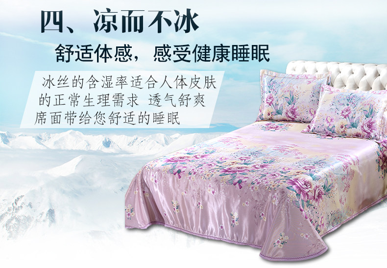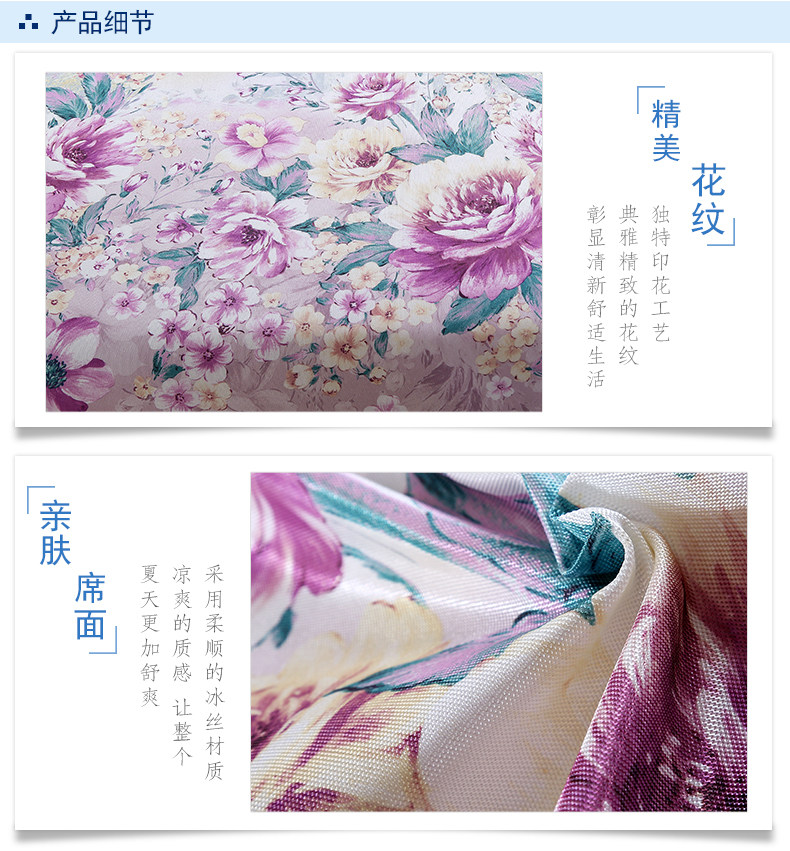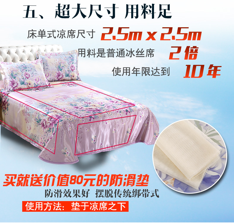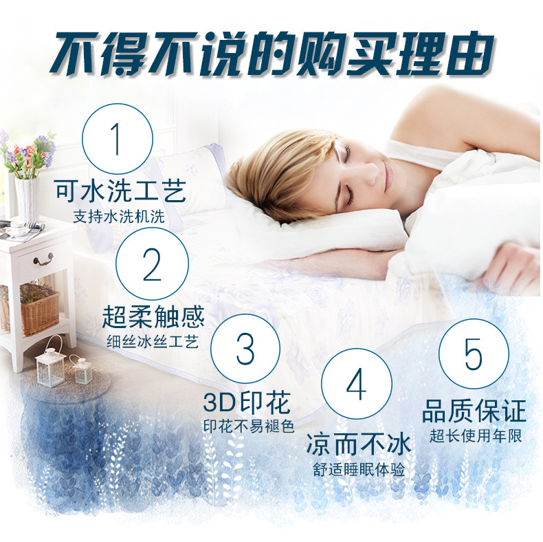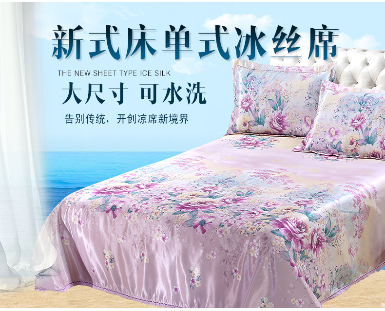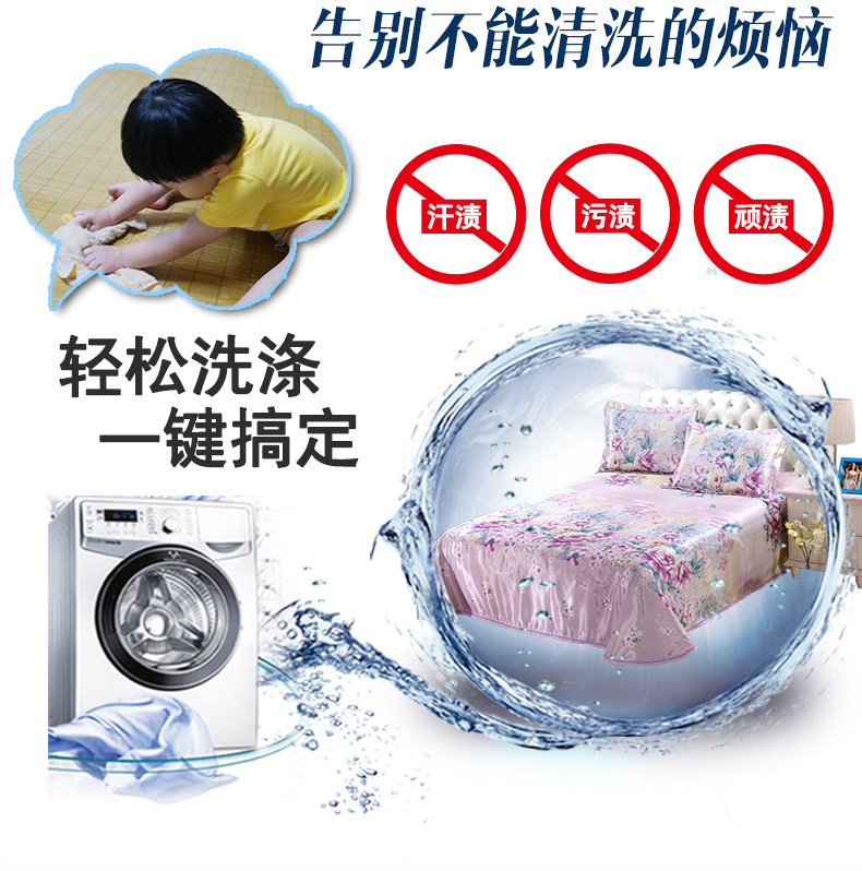 凉席1.8m床冰丝席三件套可折叠1.5米加厚夏空调印花席子水洗床单