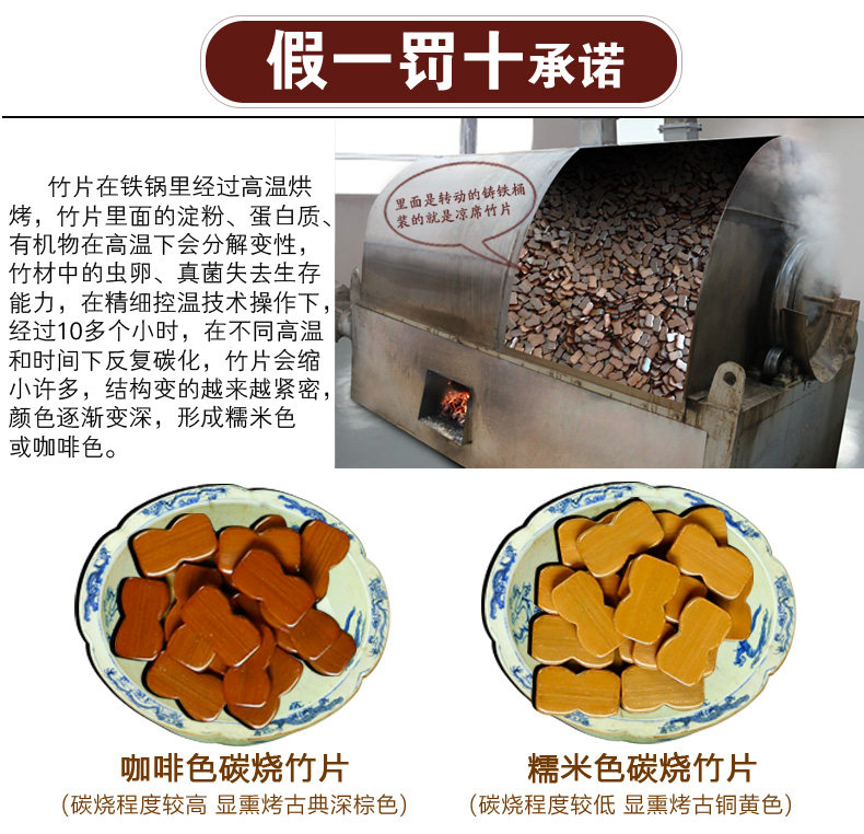 关于颜色:碳烧凉席缺点就是难以达到竹片颜色一致,不同于蒸煮染色剂熬制出来的凉席,席面颜色为熏烤古典色,有古典存旧感,竹片间有可能有色差,另外不同件、不同批次生产的竹片也有可能有色差,即不同件凉席颜色有可能有深浅。