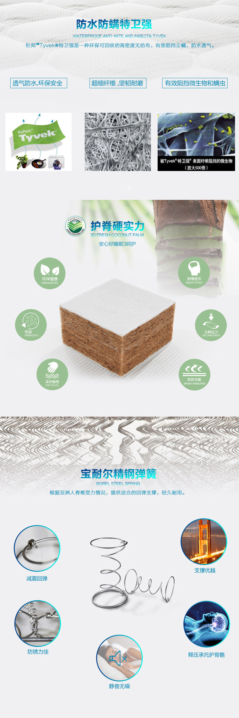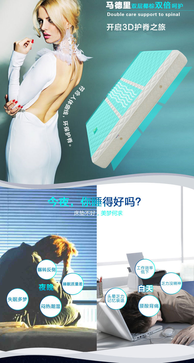 穗宝床垫 3D椰棕加硬护脊弹簧乳胶棕垫1.8米床1.5m席梦思米奥姬