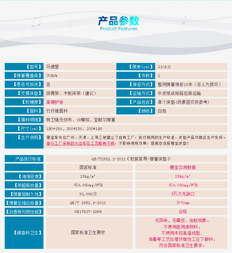 穗宝乳胶床垫偏硬护脊弹簧床垫双人席梦思1.8米iSLEEP-N