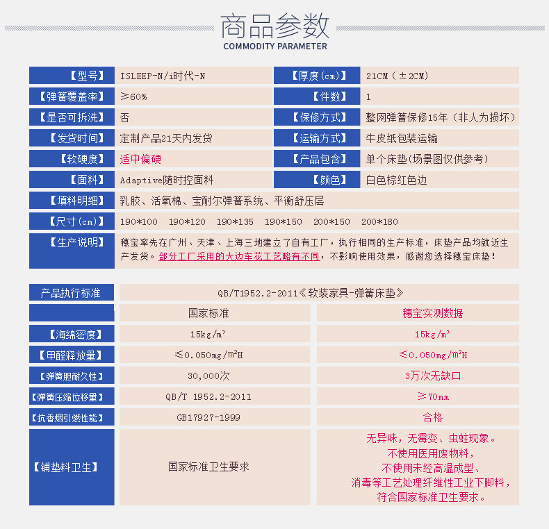 穗宝乳胶床垫偏硬护脊弹簧床垫双人席梦思1.8米iSLEEP-N