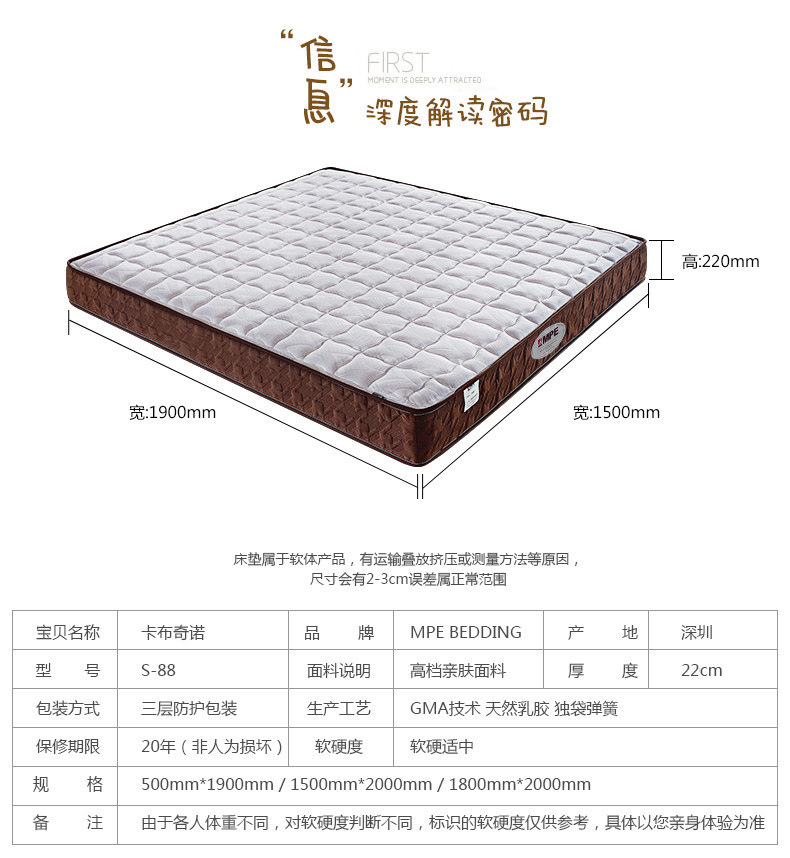 以下是MPE乳胶床垫1.5m床席梦思软硬适中成人独立弹簧双人1.8米静音床垫的详细说明,厂家介绍,求购联系信息,最终解释权归深圳市美亚实业发展有限公司所有