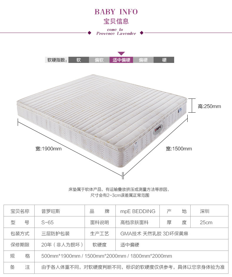 以下是MPE进口乳胶床垫硬垫子静音成人弹簧双人席梦思1.8 薰衣草的详细说明,厂家介绍,求购联系信息,最终解释权归深圳市美亚实业发展有限公司所有