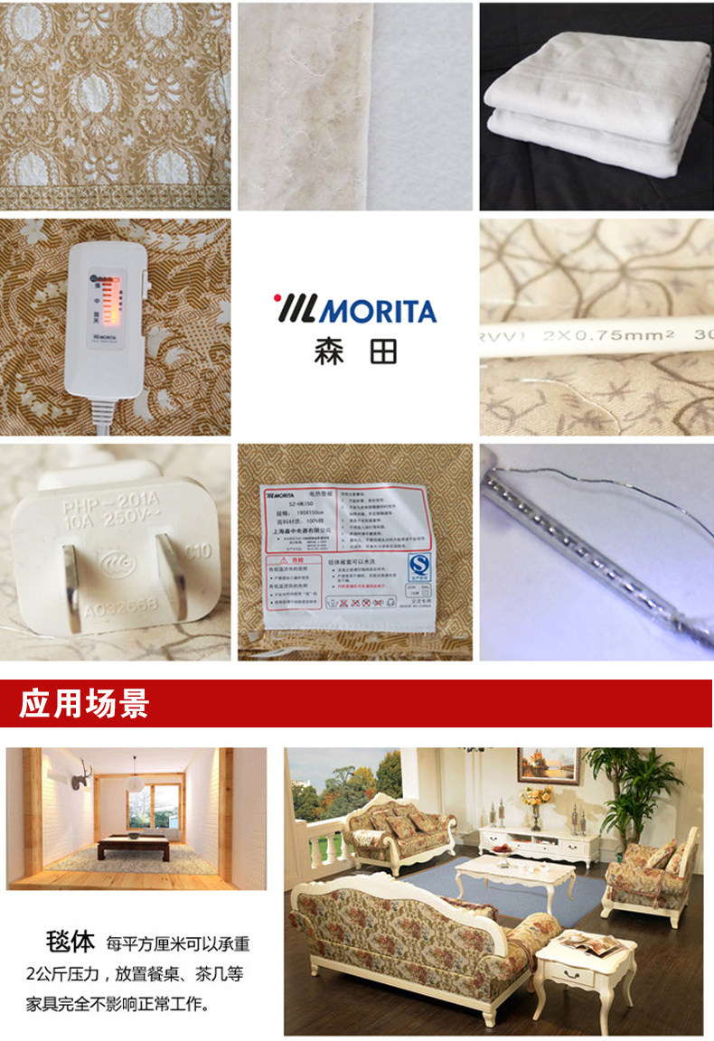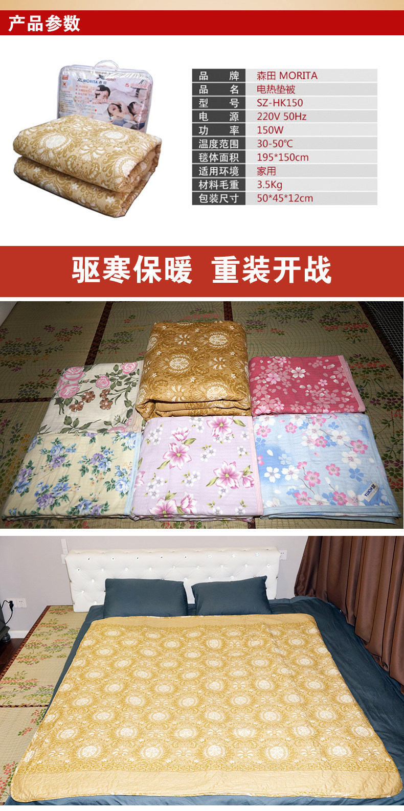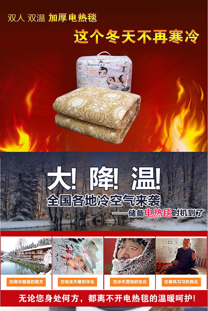 日本森田全棉电热毯双人加厚水洗除螨电热床垫韩国垫被电褥子