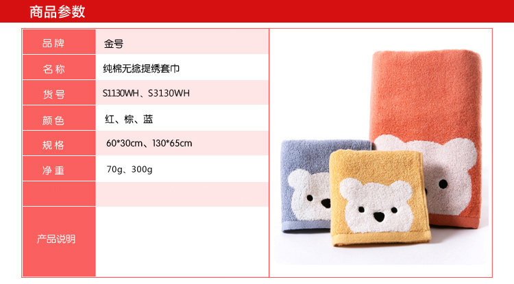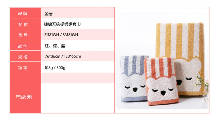 金号 全棉/纯棉大浴巾 精美提花绣花 无捻割绒工艺 柔软舒适