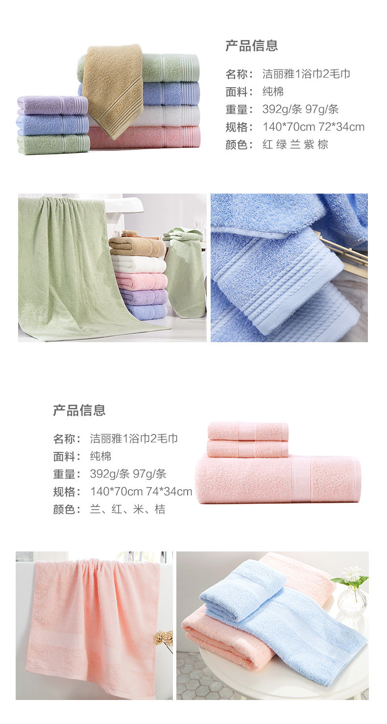 以下是洁丽雅 1浴巾2毛巾纯棉成人柔软男女婴儿吸水可爱韩版厚浴巾套装的详细说明,厂家介绍,求购联系信息,最终解释权归浙江洁丽雅纺织集团有限公司所有