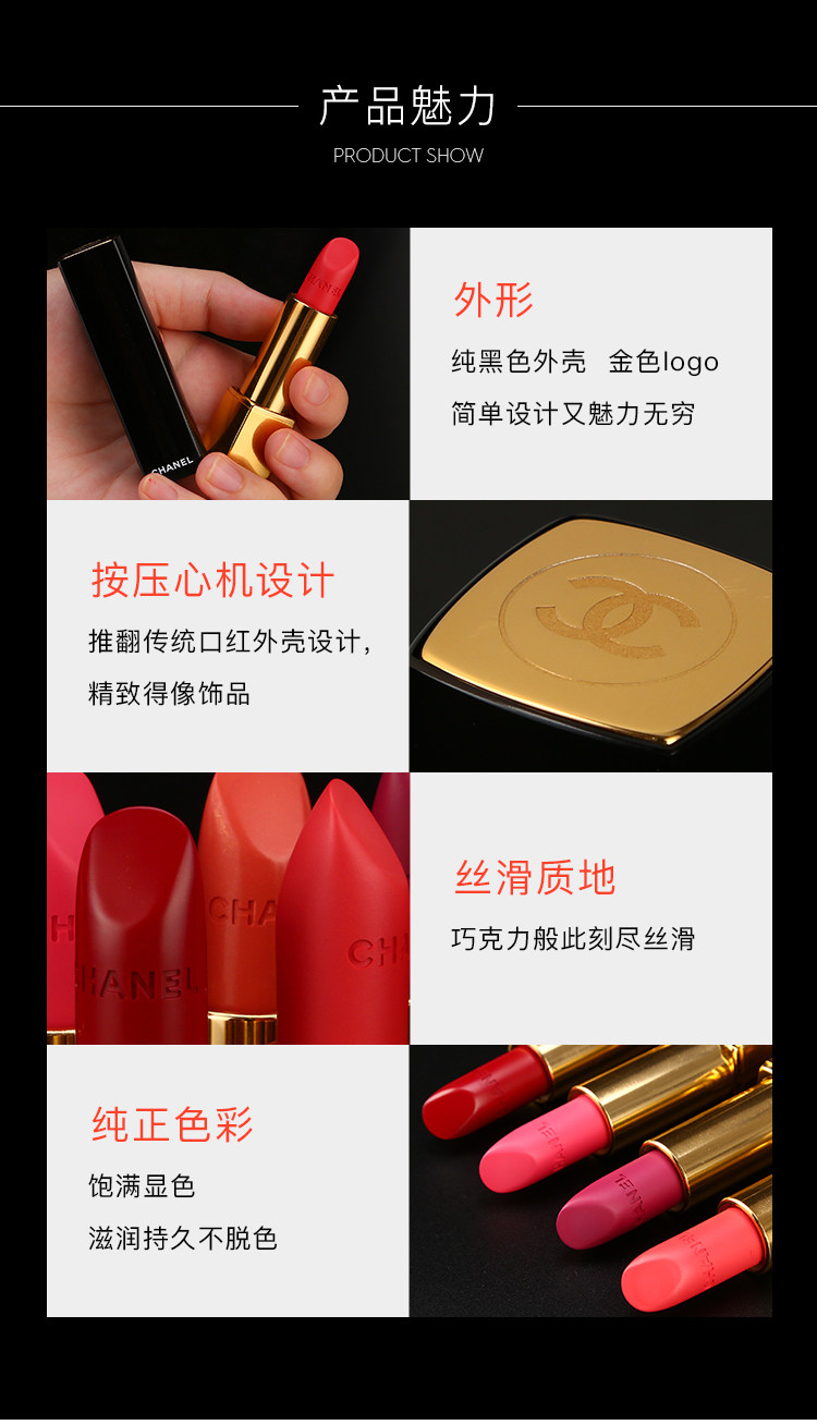 香奈儿炫亮魅力哑光持久保湿滋润唇膏口红咬唇妆