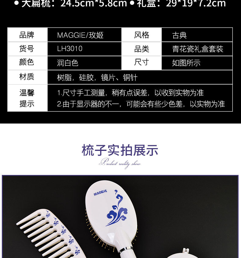 MAGGIE玫姬梳子扁梳 宽齿梳 分发梳 护发梳 盘发宽齿梳子正品