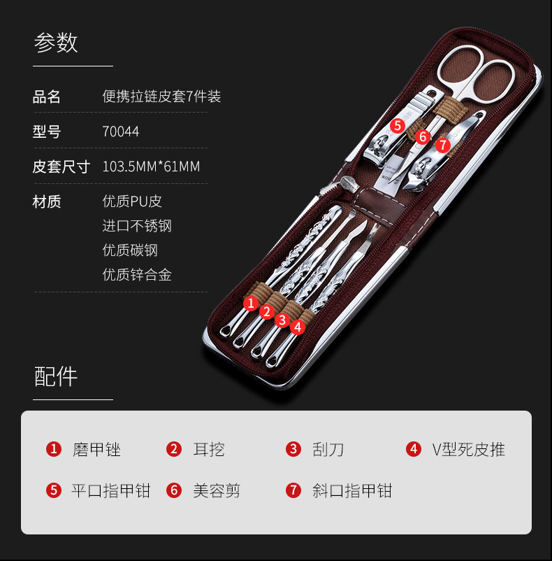 金达日美指甲刀指甲剪七件套指甲钳刮刀眉毛夹修指甲美容工具套装