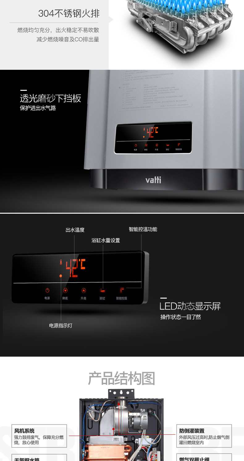 Vatti/华帝 JSQ30-i12033-16升恒温强排式燃气热水器家用 天然气