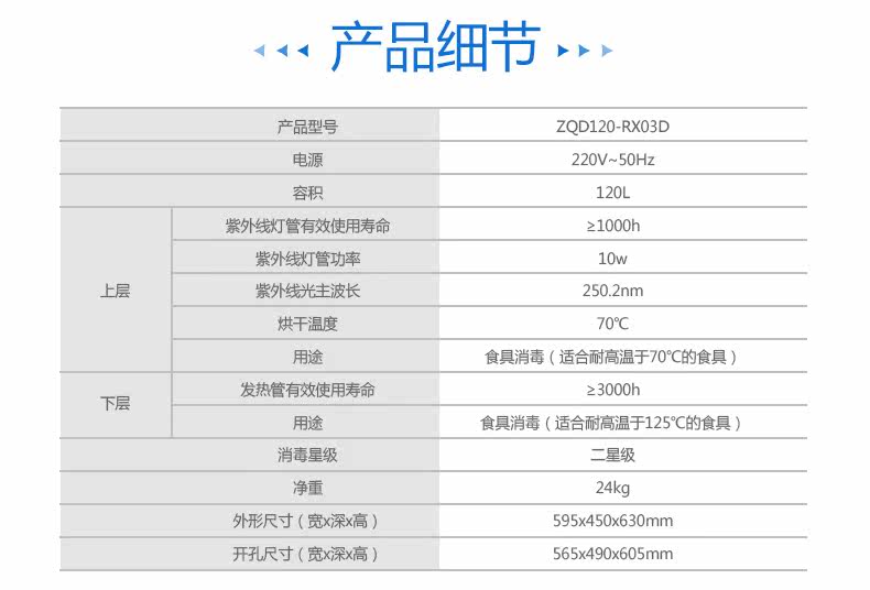 Ronshen/容声 ZQD120-RX03D二星级嵌入式高温紫外臭氧消毒柜碗柜