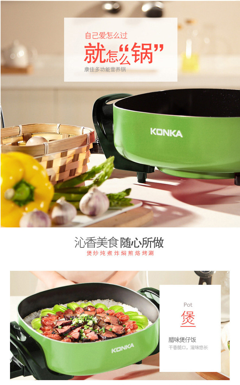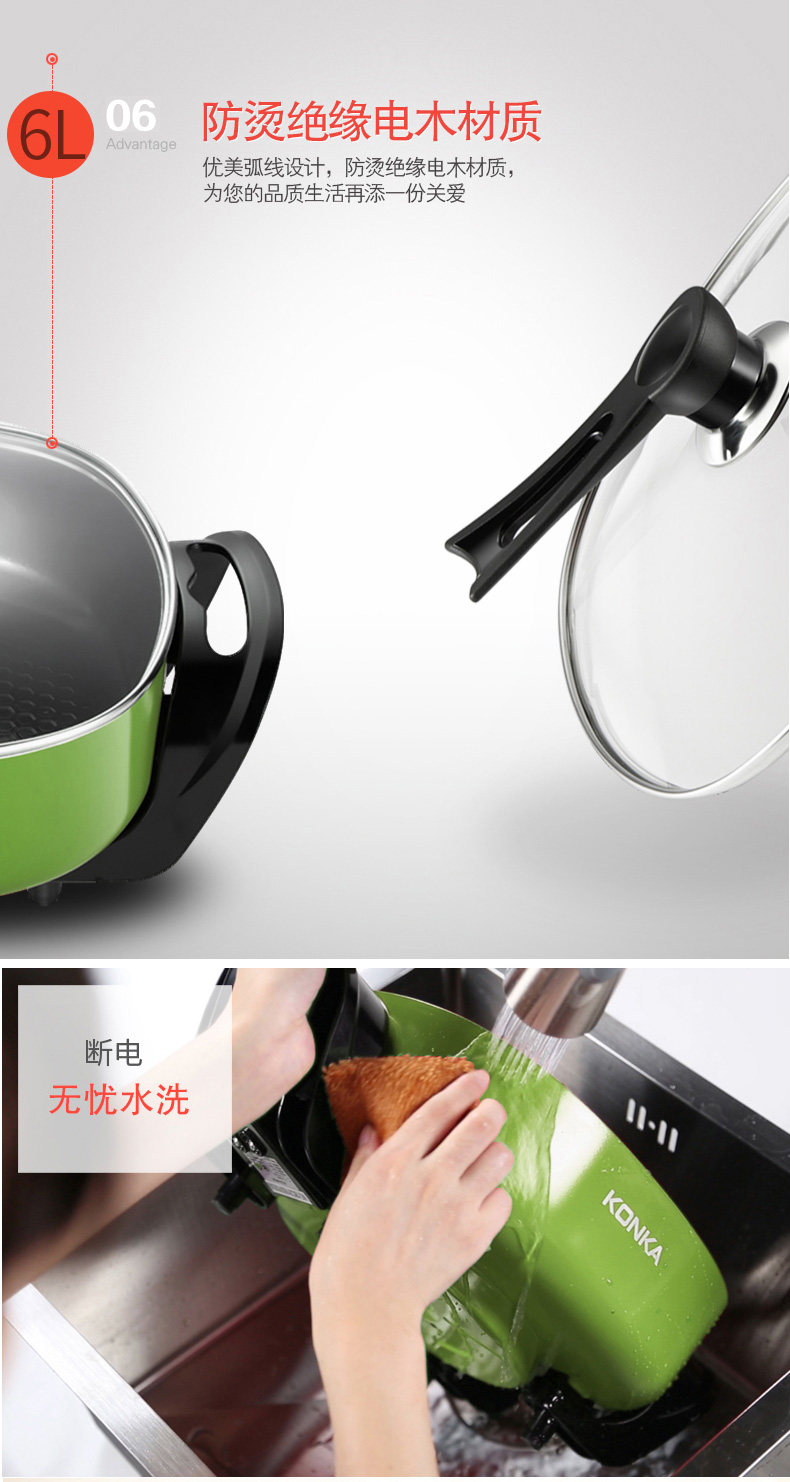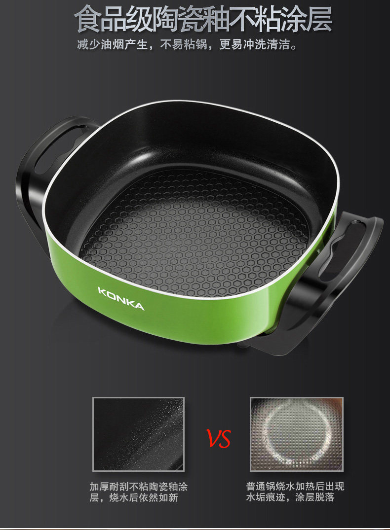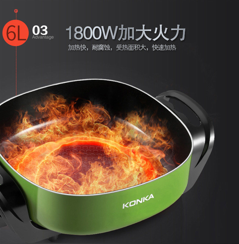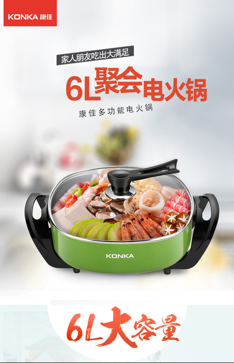 康佳韩式电火锅多功能家用火锅锅电热锅电炒锅不粘锅电煮锅电锅6L