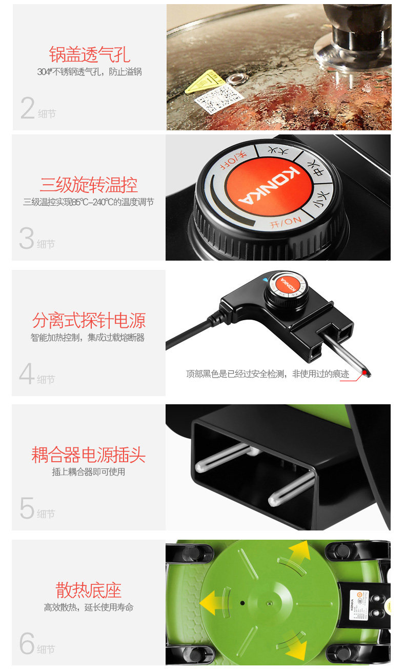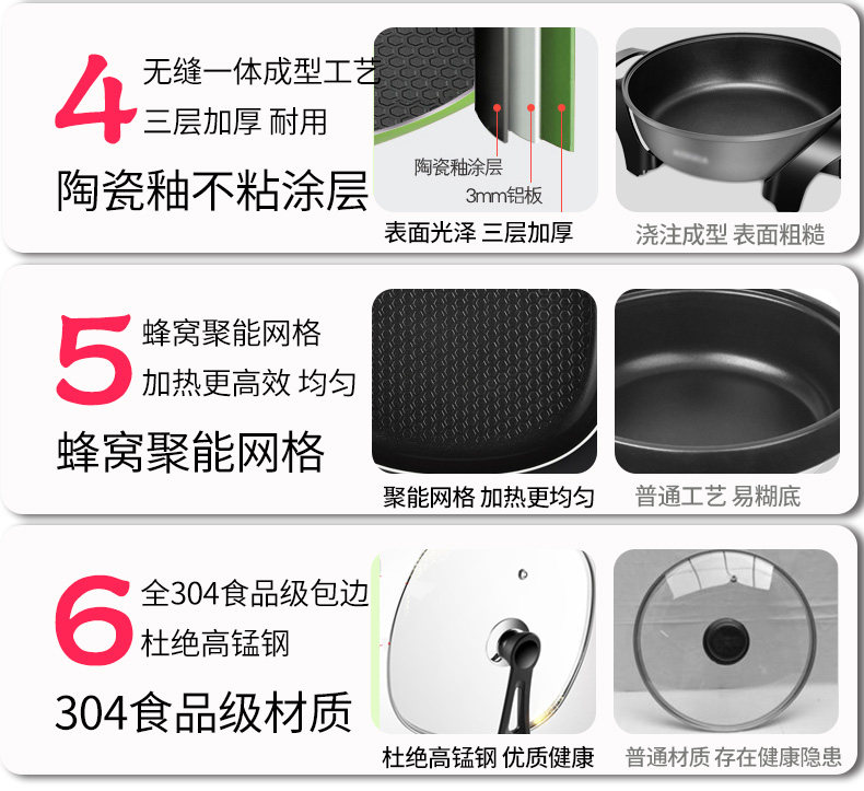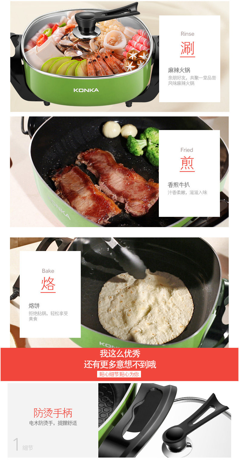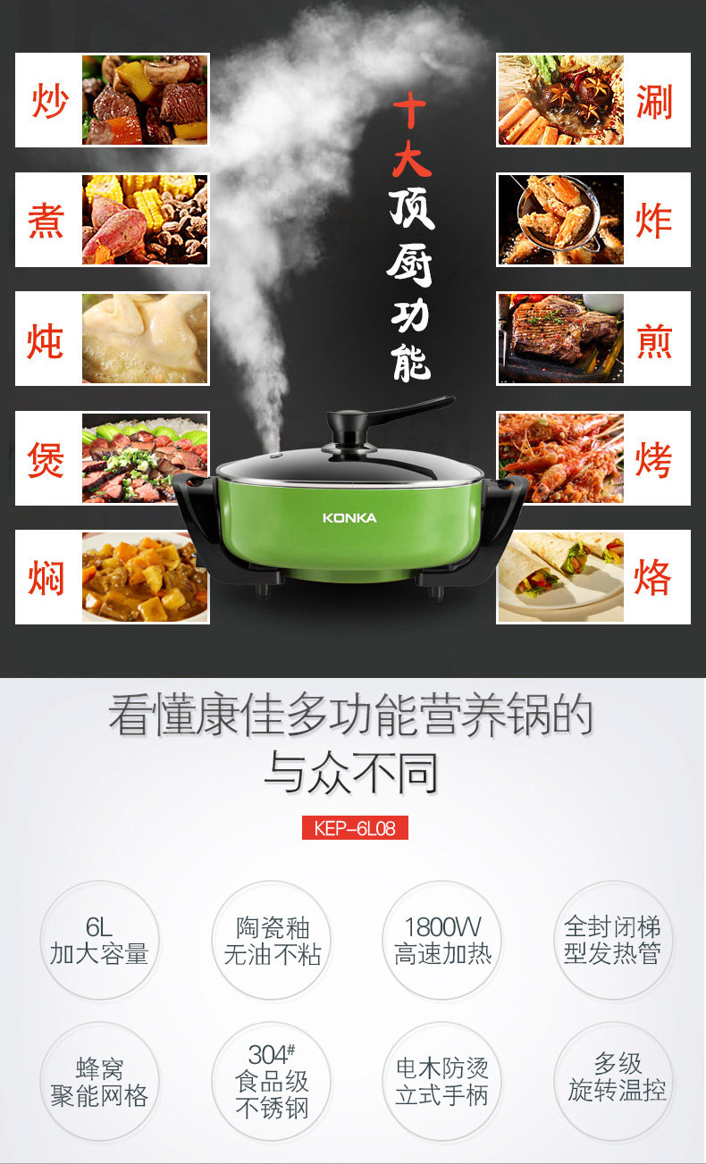 康佳韩式电火锅多功能家用火锅锅电热锅电炒锅不粘锅电煮锅电锅6L