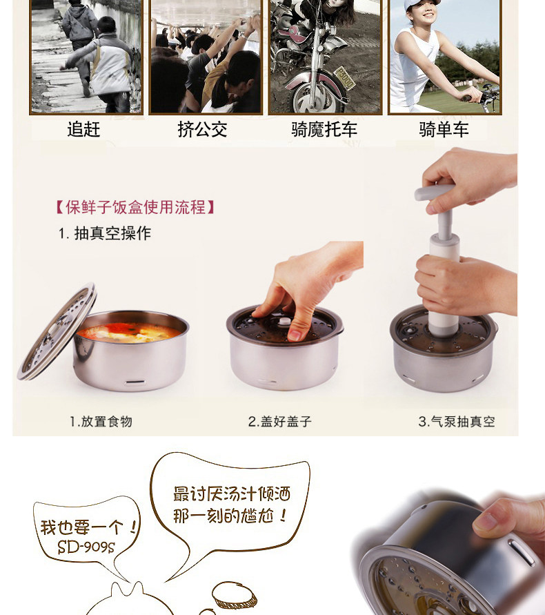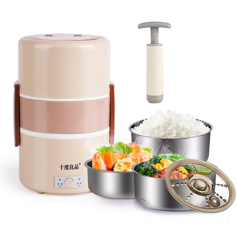十度良品电热饭盒SD-923三层加热饭盒真空可插电保温蒸饭器电饭盒