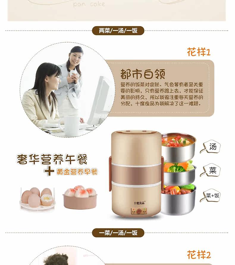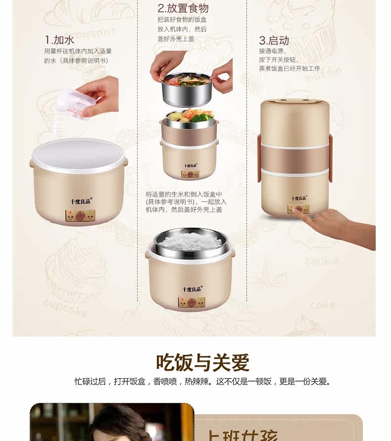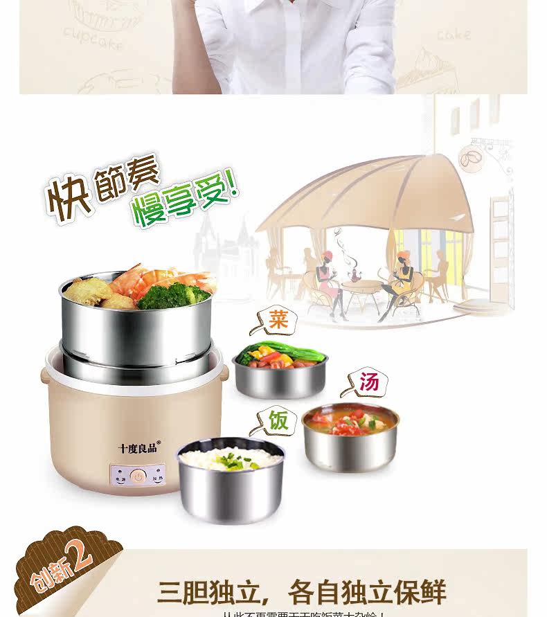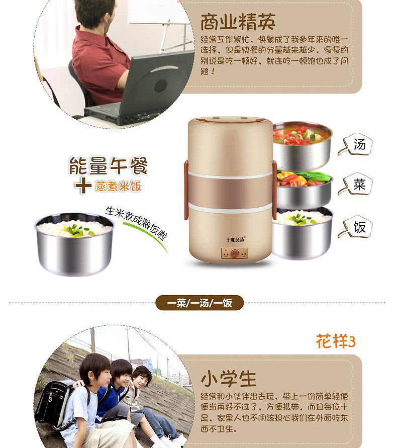 十度良品电热饭盒加热饭盒三层不锈钢保温定时蒸煮电饭盒SD-967s