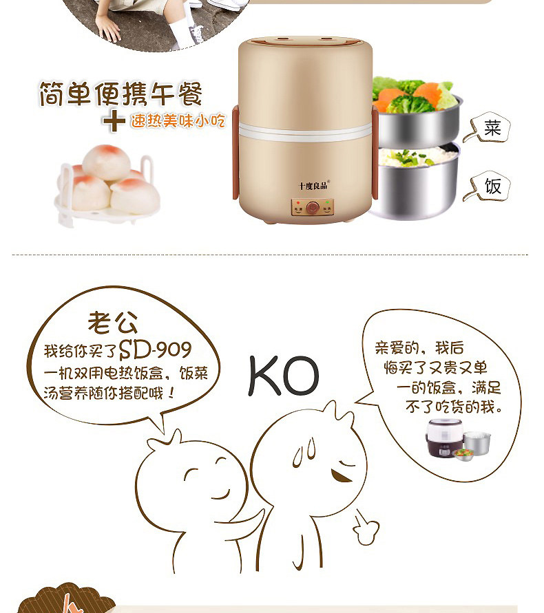 十度良品电热饭盒sd-983双层陶瓷可加热蒸煮插电保温饭盒蒸饭器