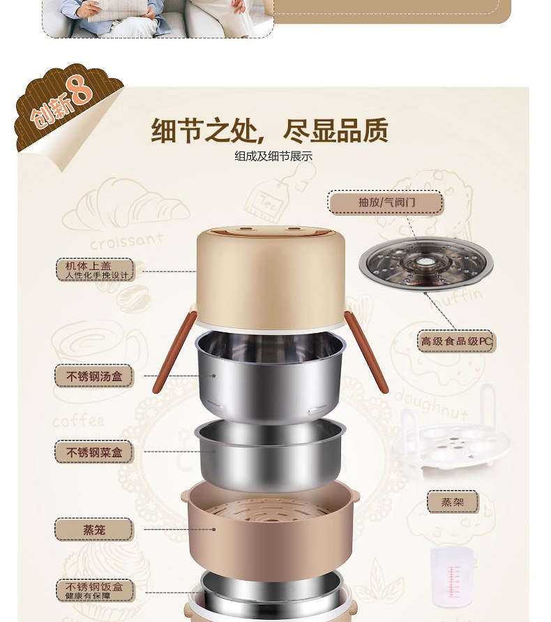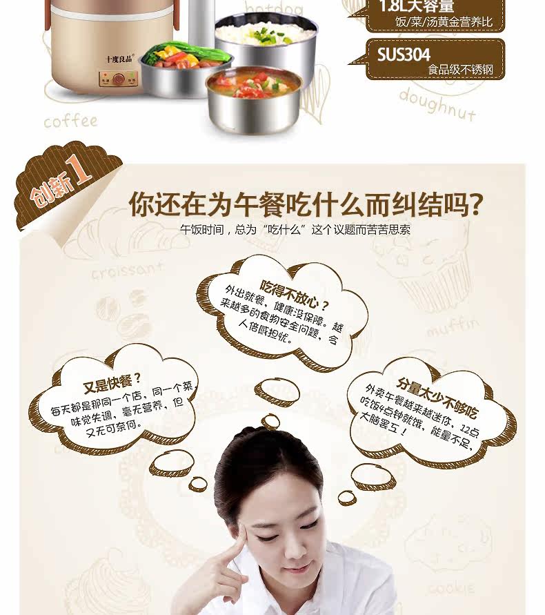 十度良品电热饭盒加热饭盒定时预约电饭盒真空保鲜插电饭盒SD-975