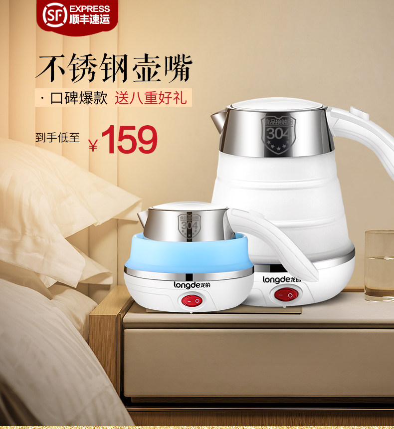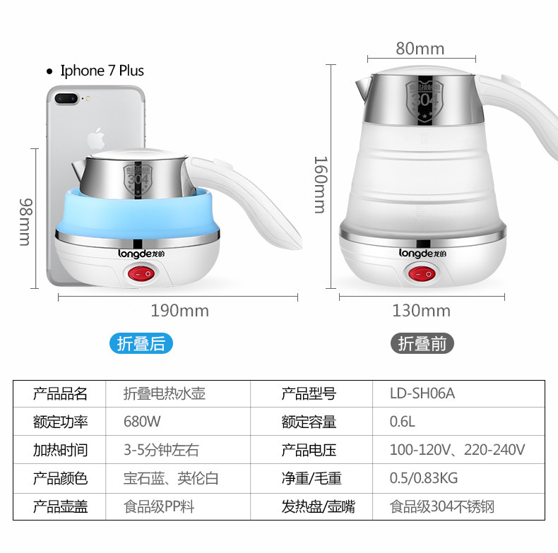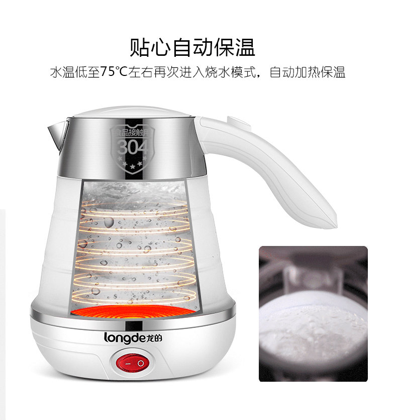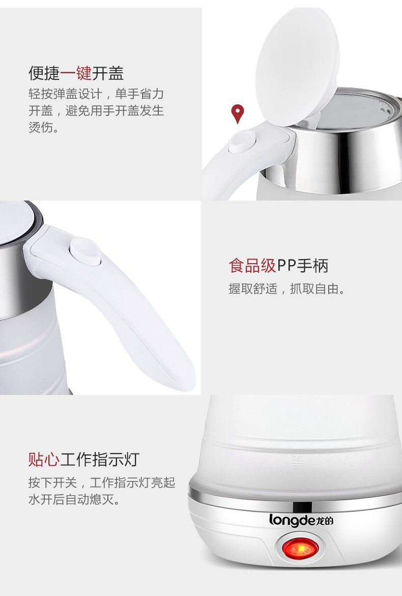 以下是龙的旅行便携式保温热水壶可折叠电热水壶旅游小迷你电烧水壶压缩的详细说明,厂家介绍,求购联系信息,最终解释权归广东龙的集团有限公司所有