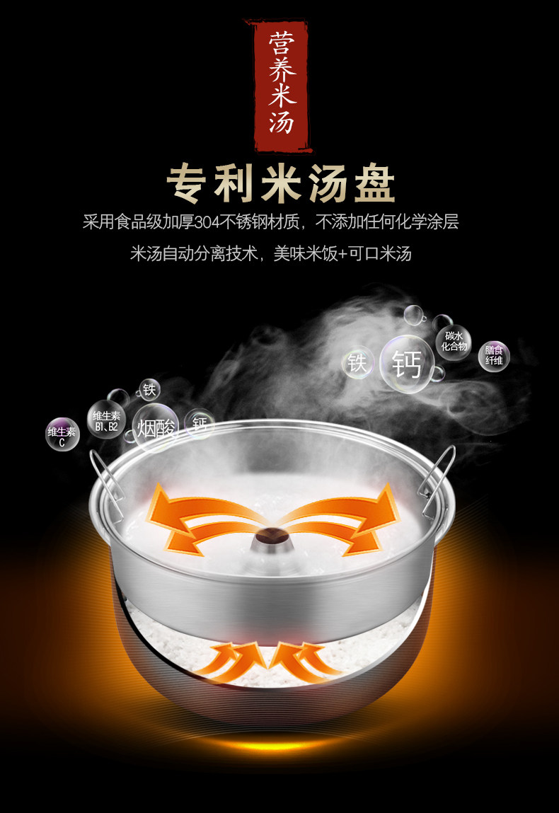 无涂层304不锈钢内胆智能电饭煲锅 5人-6人ROTA/润唐 RFB-6503-S