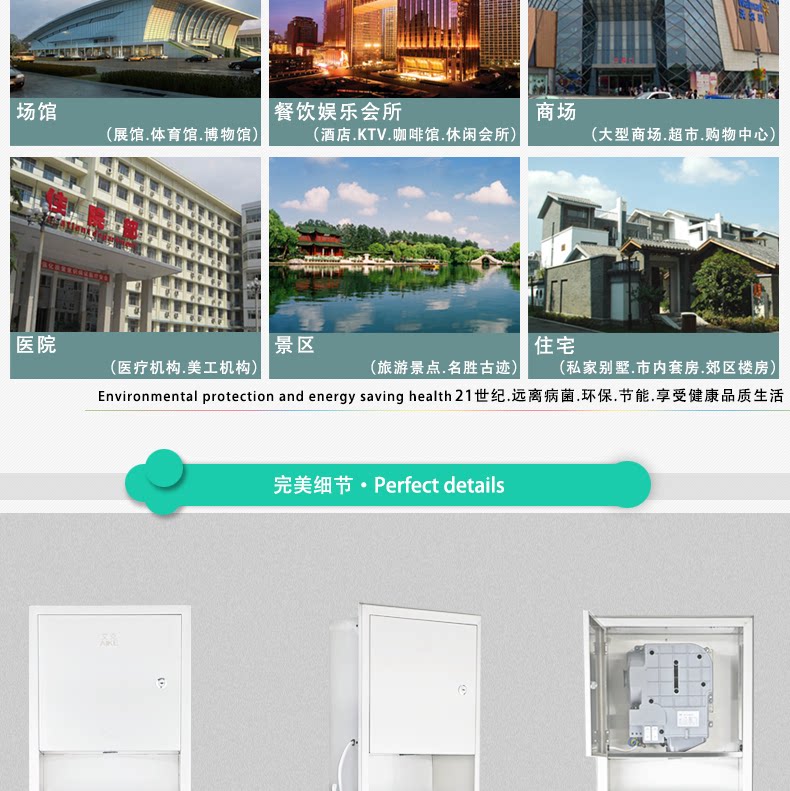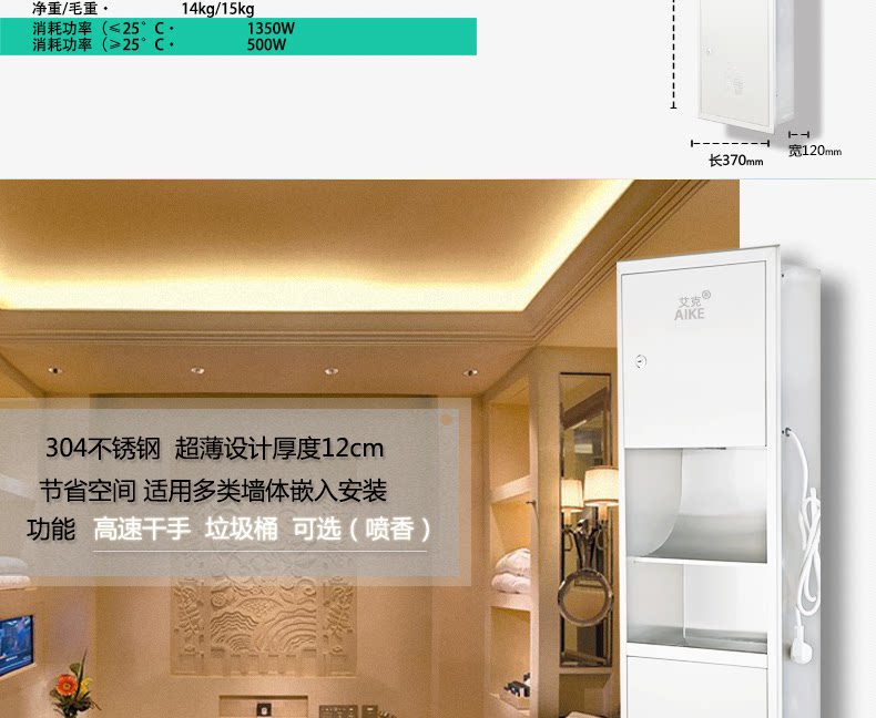 AIKE艾克嵌墙式干手器垃圾桶二合一组合柜卫生间多功能干手组合柜