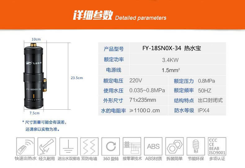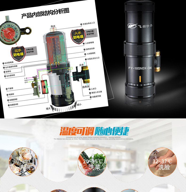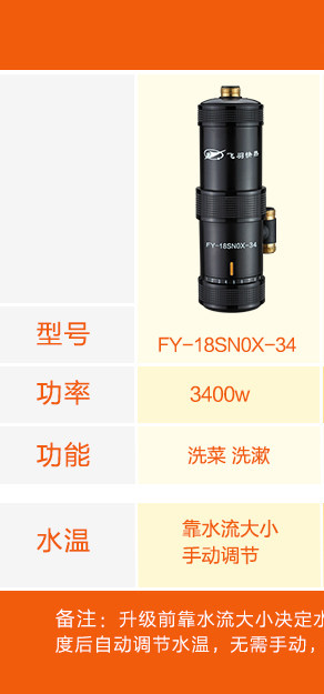 飞羽 FY-18SNOX-34厨房电热水龙头1秒即热式热水器淋浴小型厨宝