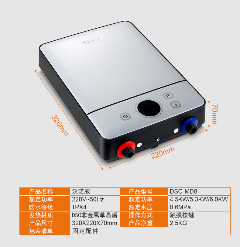 HANNOVER/汉诺威MF8即热式电热水器 家用恒温速热淋浴洗澡机