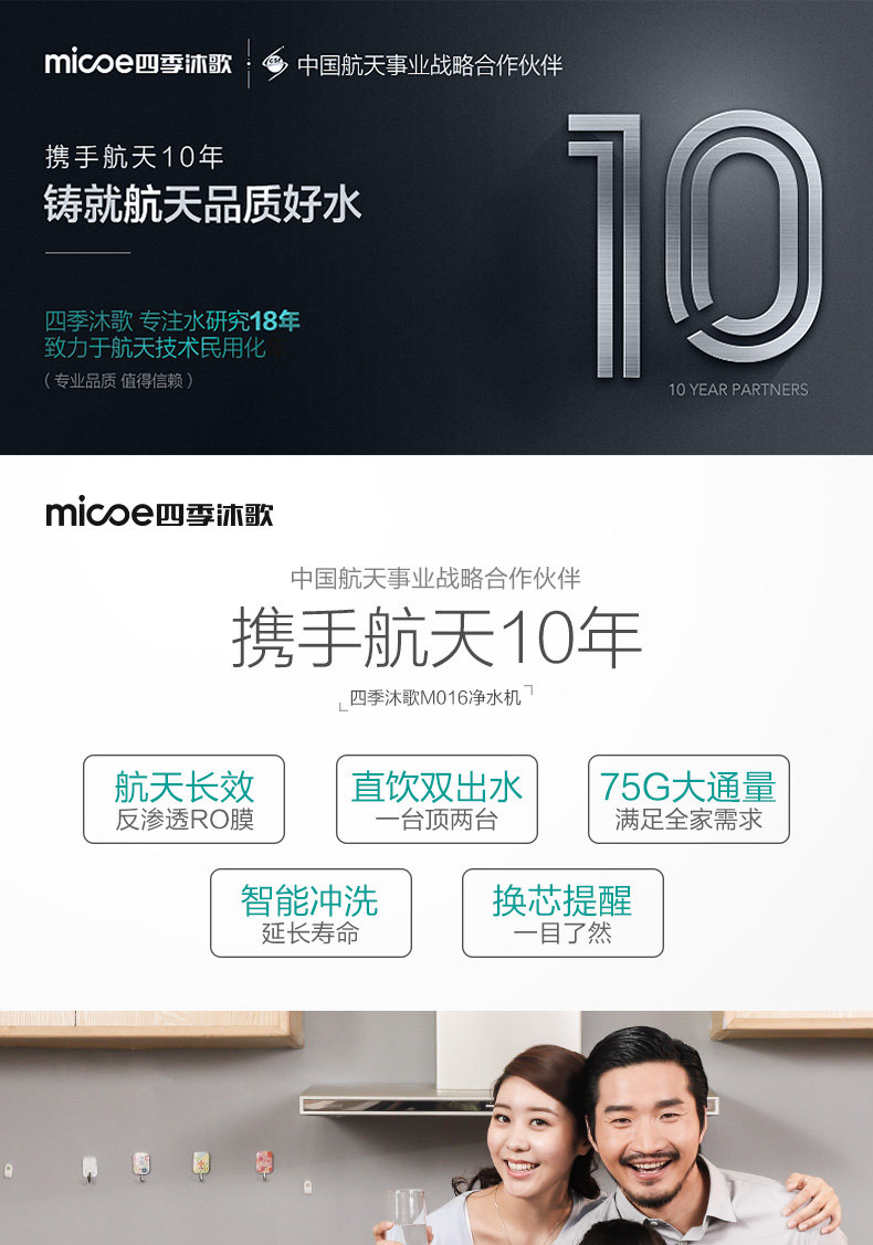 四季沐歌厨房净水器家用直饮自来水过滤器高端RO膜反渗透净水器M2