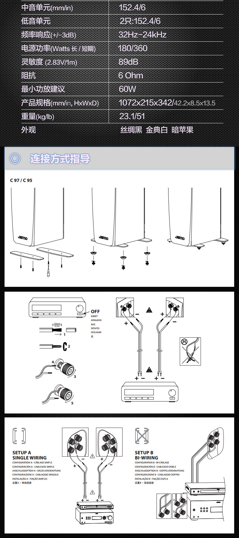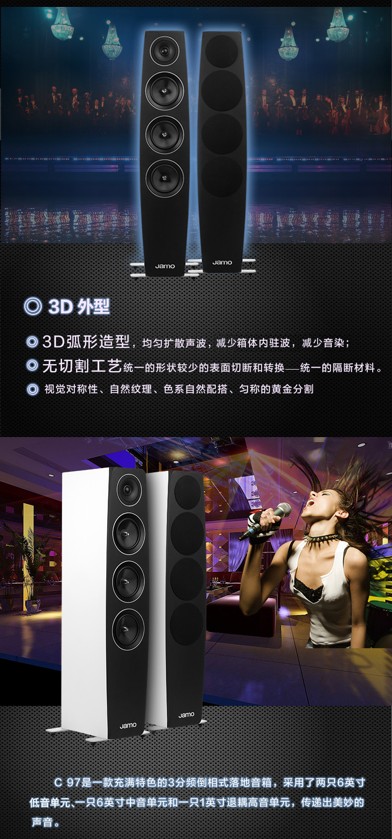 以下是JAMO/尊宝 C 97 家庭影院 电视客厅落地前置主音箱 家用HIFI音响的详细说明,厂家介绍,求购联系信息,最终解释权归上海尊宝音响有限公司所有