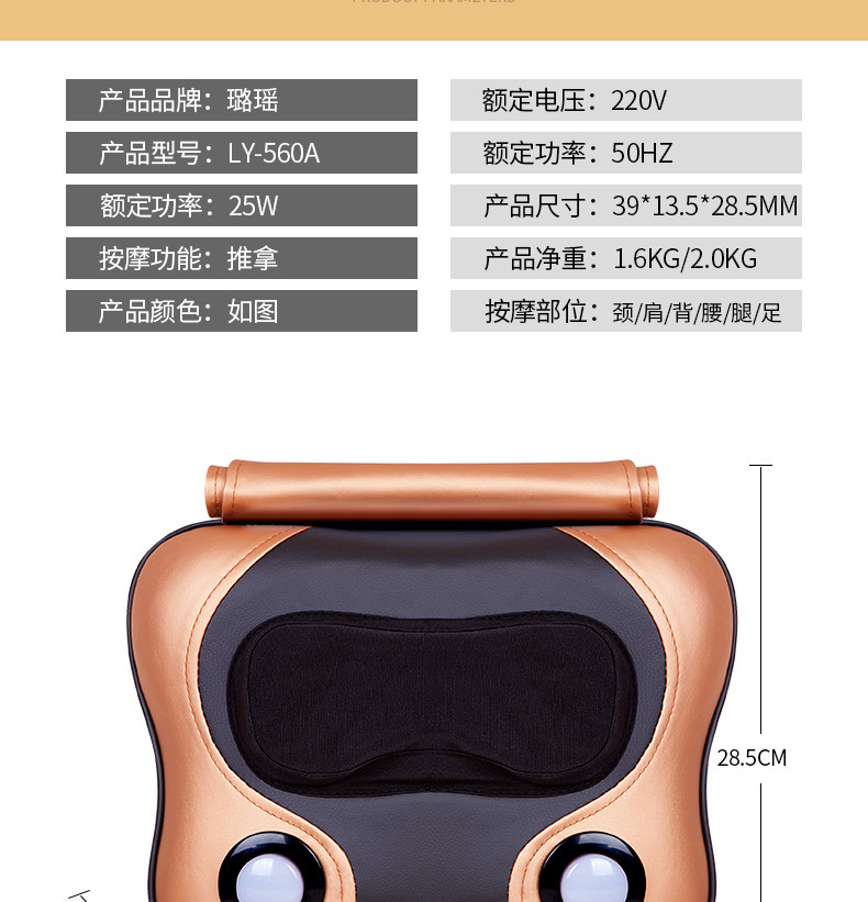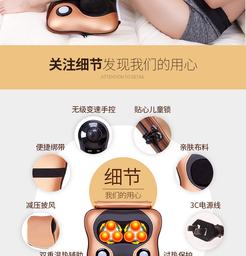 以下是劲椎颈椎腰疼按摩枕器多功能全身穴位揉捏家用腰部成人带加热推拿的详细说明,厂家介绍,求购联系信息,最终解释权归浙江璐瑶电子科技有限公司所有